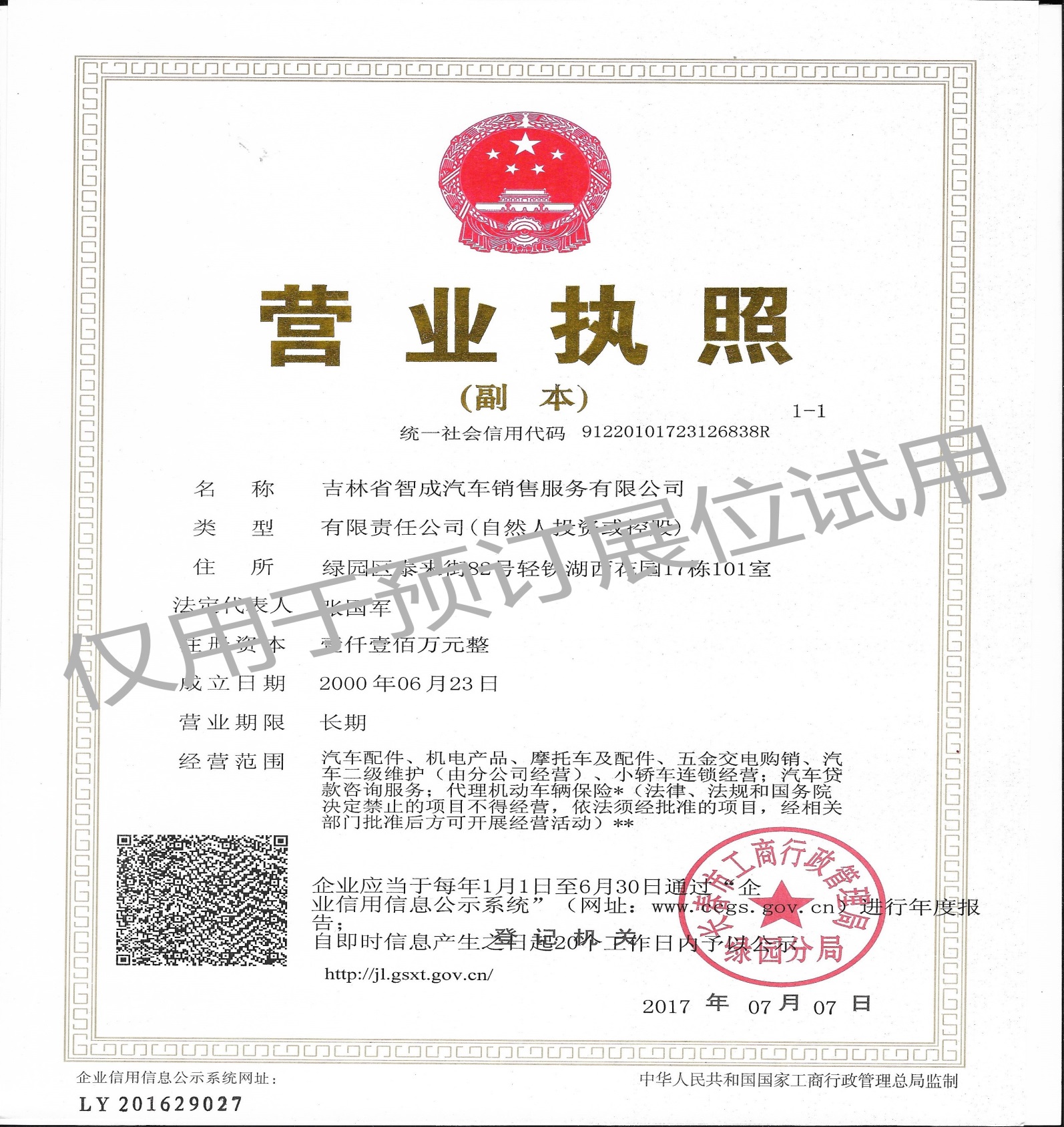 | 單位名稱 | 吉林省智成汽車銷售服務(wù)有限公司 | ||||