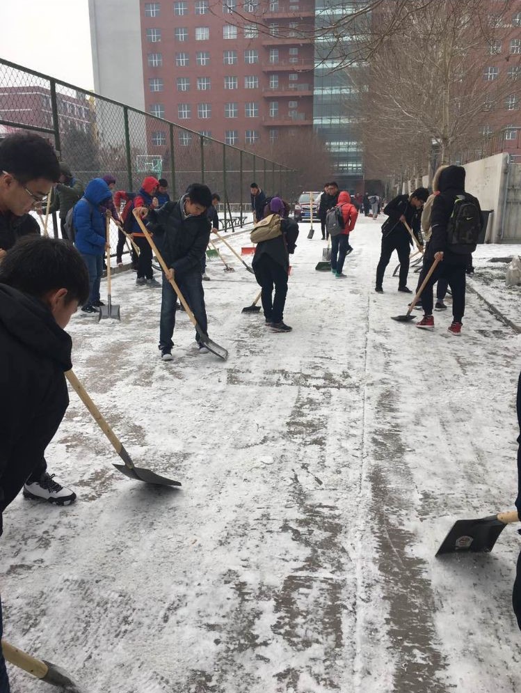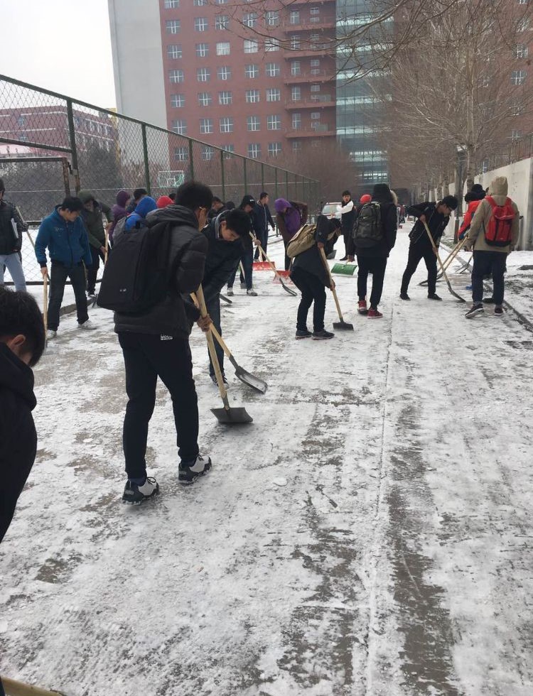 盡管力量有限,甚至有些同學(xué)還忙不上吃午飯,但是參加的同學(xué)仍舊十分賣力。路上的積雪浸濕了同學(xué)們的鞋子,寒冷的天氣依舊使同學(xué)們額頭冒汗,然而沒有一個(gè)同學(xué)喊累。大家有著共同的目標(biāo)——掃完這條路上的積雪。