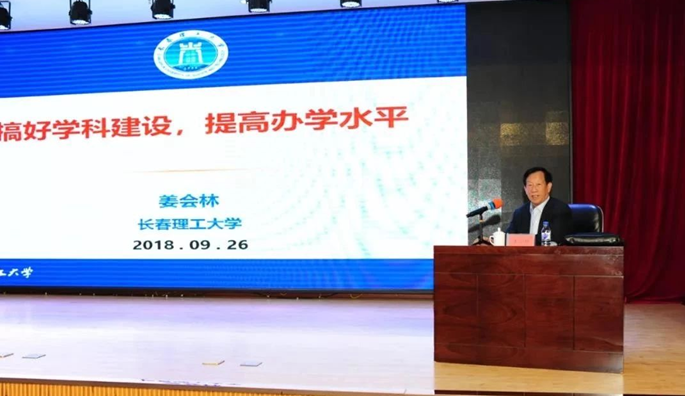 姜會(huì)林院士為全院師生員工作了《搞好學(xué)科建設(shè),提高辦學(xué)水平》學(xué)術(shù)報(bào)告。報(bào)告主要對(duì)接國(guó)家戰(zhàn)略需求,圍繞當(dāng)前我省民辦學(xué)校學(xué)科建設(shè)的現(xiàn)狀及意義,以及發(fā)展建議三個(gè)方面內(nèi)容。報(bào)告指出,截至2018年8月,全國(guó)有普通高校2631所,其中本科高校1243所(民辦本科高校426所),吉林省共有62所普通高校(其中民辦本科高校12所)。2017年吉林省批準(zhǔn)16所高校擁有碩士授予權(quán)建設(shè)單位,我院為其中之一,學(xué)科類(lèi)別為機(jī)械工程、光學(xué)工程、信息工程。