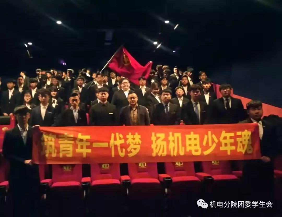 3月24日上午八點(diǎn)三十分,機(jī)電工程分院分團(tuán)委書(shū)記趙寶剛老師帶領(lǐng)機(jī)電工程分院分團(tuán)委學(xué)生會(huì)干部和機(jī)電工程分院班級(jí)干部觀看了紅色影片《流浪地球》 ,同學(xué)們朝氣蓬勃,意氣風(fēng)發(fā)。機(jī)電工程分院的院旗與團(tuán)旗迎風(fēng)飄揚(yáng),上車(chē)后學(xué)生們?cè)谲?chē)上自發(fā)高唱《我和我的祖國(guó)》,歌聲回蕩在車(chē)中良久,不難看出同學(xué)們對(duì)此次筑夢(mèng)活動(dòng)的向往。