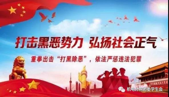 掃黑除惡專項(xiàng)斗爭是一項(xiàng)重大的政治任務(wù),需要機(jī)電工程分院各部門高度重視,相互配合,針對當(dāng)前涉黑涉惡問題新動(dòng)向,有力打擊侵害校園、威脅師生安全的黑惡勢力犯罪,努力營造良好的教育教學(xué)環(huán)境,為學(xué)生的安全健康成長提供堅(jiān)強(qiáng)保障。