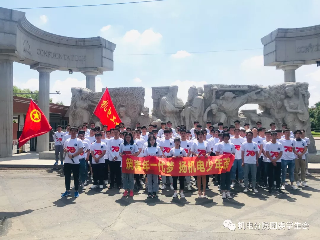 同學(xué)們身著祖國70周年生日服裝,高舉分院旗幟,喊出了“筑青年一代夢,揚(yáng)機(jī)電少年魂”的口號,并在校門口拍攝了合照。隨后,同學(xué)們進(jìn)入校區(qū)進(jìn)行參觀。同學(xué)們在參觀的過程中行動(dòng)井然有序,保持了環(huán)境的整潔,待人彬彬有禮,展現(xiàn)了長春理工大學(xué)光電信息學(xué)院學(xué)子的過人素質(zhì)。
