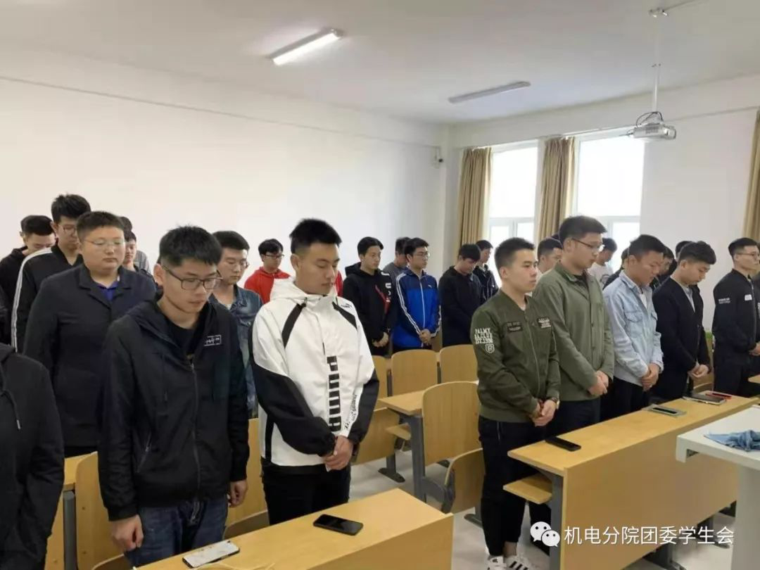 2019年9月18日上午九點十八分,機(jī)電工程分院學(xué)生黨支部組織全體學(xué)生黨員進(jìn)行集體默哀。隨著警報聲響起,大家集體肅立默哀,表達(dá)對革命先烈們的深刻緬懷和敬仰之情。就是這短短的三分鐘,讓我們感慨萬千:我們不會忘了明晃晃的刺刀穿進(jìn)國人的胸膛,干枯的鮮血覆蓋住了褐色的土壤;不會忘了數(shù)萬同胞被埋,恐懼的哭喊聲伴著無助的掙扎卻未能幸免被殺;不會忘了如雨的炸彈狂轟亂炸,數(shù)以萬計的瘦弱身軀難以逃離這場慘絕人寰的屠殺!