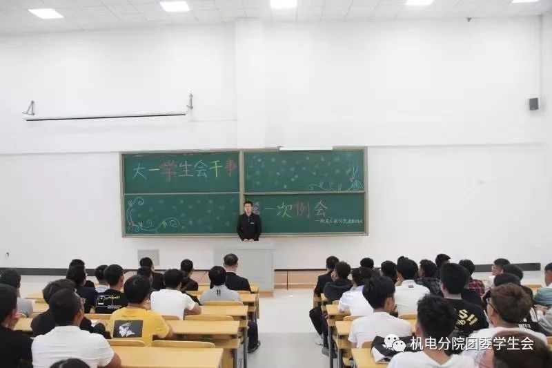 首先,由機電工程分院團委副書記童雨宣布機電工程分院團委學生干事第一次例會正式開始。緊接著學生會主席郝博超進行了自我介紹并對新成員表示歡迎。機電工程分院團委學生會所有大一成員統(tǒng)稱為學生干事,沒有部門之分。隨后郝博超宣布了學生會在工作中的注意事項,在學生會做干事要有激情有熱情還要有積極主動為學生服務。