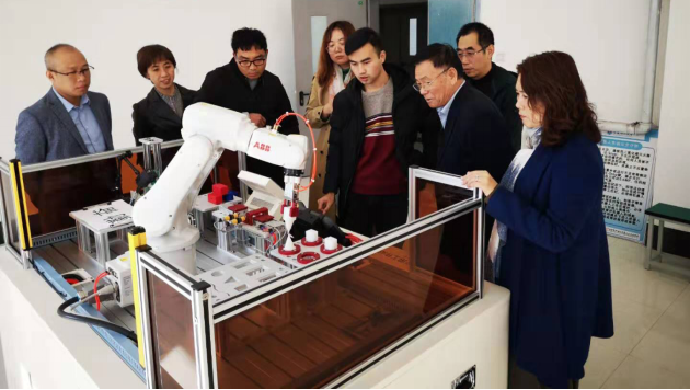 2019年10月份,北京昊科世紀(jì)信息技術(shù)有限公司派出教師指導(dǎo)我校老師培訓(xùn)機(jī)器人實驗教學(xué)工作,教師們學(xué)習(xí)非常認(rèn)真,在學(xué)習(xí)過程中與廠方代表進(jìn)行了互動交流。在培訓(xùn)中北京昊科世紀(jì)信息技術(shù)有限公司工程師講解了機(jī)器人安全、安裝和維護(hù)。培訓(xùn)從機(jī)器人的開啟,示教器的基礎(chǔ)操作實驗,機(jī)器人I/O通信認(rèn)知實驗,機(jī)器人轉(zhuǎn)數(shù)計數(shù)器更新實驗,機(jī)器人工具校驗實驗,機(jī)器人碼垛作業(yè)實驗,機(jī)器人模擬加工作業(yè),機(jī)器人軌跡示教實驗 機(jī)器人TCP示教實驗,機(jī)器人書寫模擬實驗,機(jī)器人視覺分揀作業(yè),機(jī)器人沖壓工作站作業(yè)等各實驗內(nèi)容做出詳細(xì)說明和示范,并對學(xué)生實驗可能出現(xiàn)的問題做出了解答。