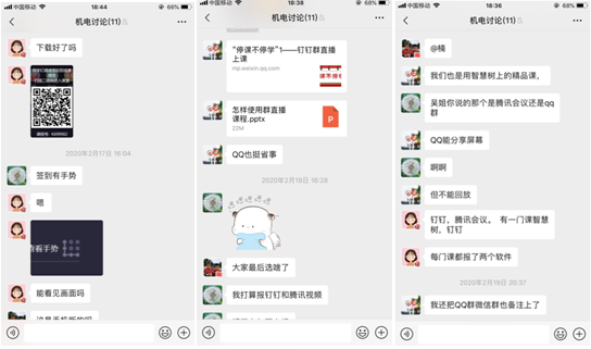 機電工程分院全體教師充分利用網(wǎng)絡教學資源與教學平臺,根據(jù)各自不同科目對采用平臺及教學方式進行提前設計,針對線上教學對課件資料進行重新整理,每位教師針對各自教學班都建立了QQ群和微信群,力求與學生進行良好的溝通。授課期間采用多種授課軟件,保證教學工作順利進行,能夠?qū)崿F(xiàn)教學知識點講解、學生考勤、疑難解答、作業(yè)完成以及測驗等等。