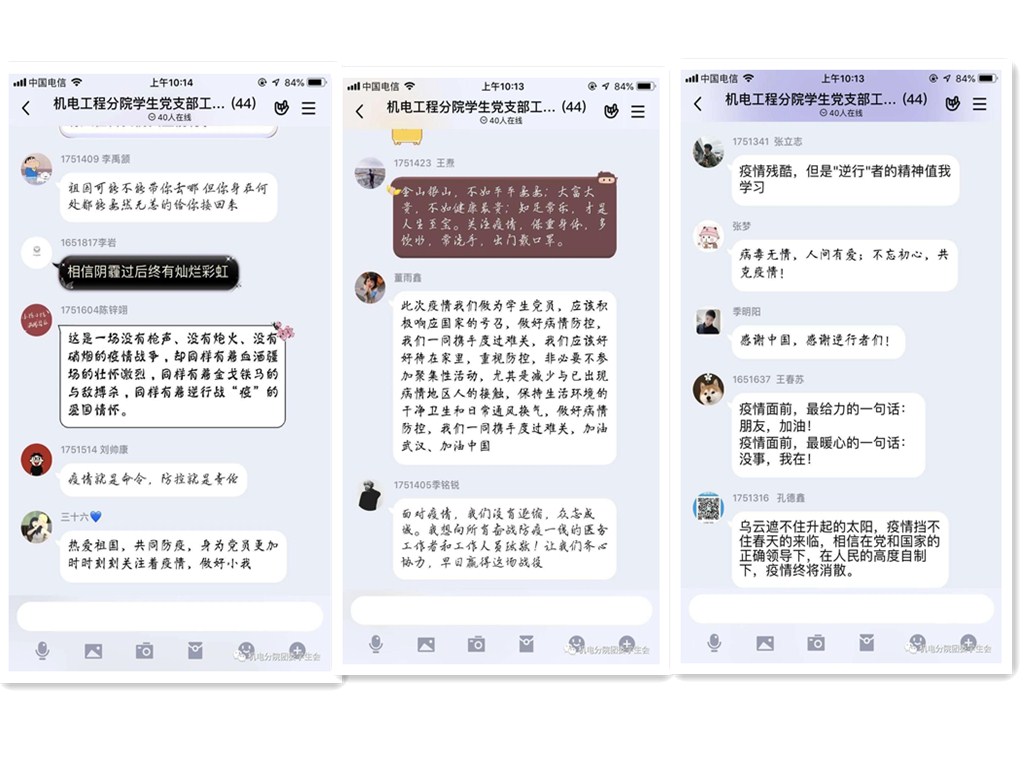 會(huì)議最后,支部書(shū)記囑咐大家要注意身體,在家也要多運(yùn)動(dòng),多讀書(shū),充實(shí)自己,希望能早點(diǎn)在學(xué)校與大家相見(jiàn)。