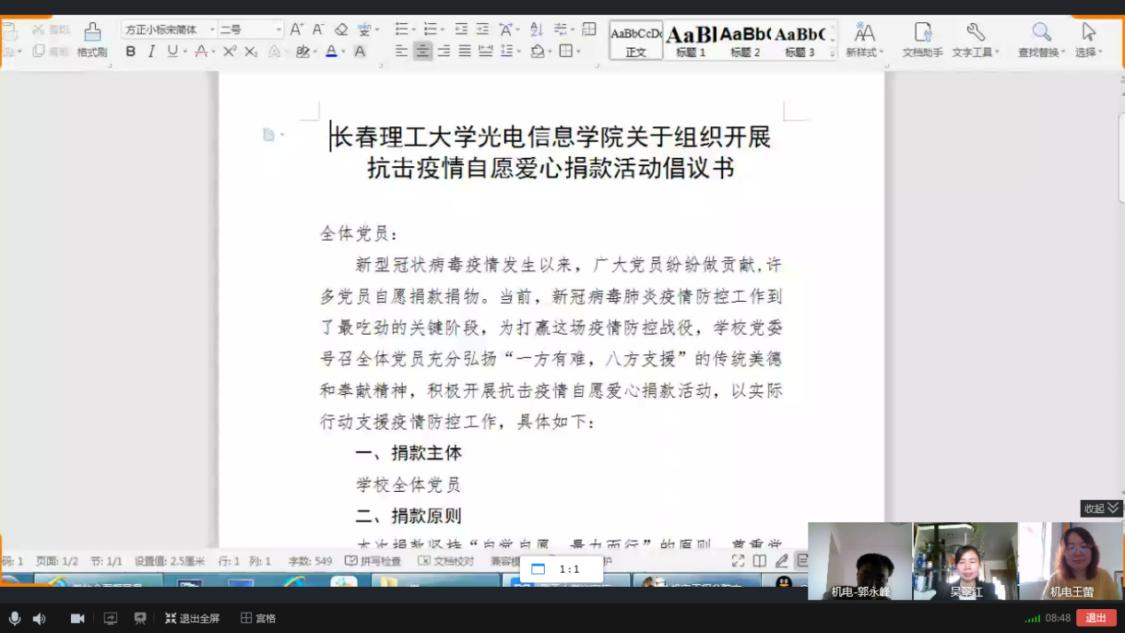 2、響應(yīng)黨中央對(duì)廣大黨員的號(hào)召,學(xué)校黨委號(hào)召全體黨員充分弘揚(yáng)“一方有難,八方支援”的傳統(tǒng)美德和奉獻(xiàn)精神,積極開(kāi)展抗擊疫情資源愛(ài)心捐款活動(dòng),以實(shí)際行動(dòng)支援疫情防控工作。