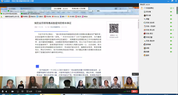 本次學(xué)習(xí)采用“網(wǎng)絡(luò)會議+自主學(xué)習(xí)”相結(jié)合的方式,一方面通過QQ在線分享屏幕功能開展網(wǎng)絡(luò)在線集中學(xué)習(xí);另一方面,各位黨員按照所提供的學(xué)習(xí)材料開展自主學(xué)習(xí)。