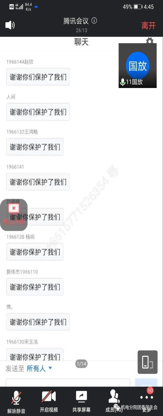 學(xué)院還組織各班積極開展班會(huì)活動(dòng),引導(dǎo)學(xué)生以積極的心態(tài)面對(duì)疫情期間的學(xué)習(xí)與生活,勇于挑戰(zhàn),微笑面對(duì)。通過云會(huì)議讓同學(xué)們深切的感受到了中國(guó)抗疫的決心與中國(guó)力量。同學(xué)們也通過此次會(huì)議內(nèi)心深深的被觸動(dòng),熱血沸騰。在這場(chǎng)疫情中,我們每一個(gè)同學(xué)都要保護(hù)好自己,不讓關(guān)愛自己的人擔(dān)心,做科學(xué)的傳播者、謠言的粉碎者、健康的守護(hù)者、學(xué)習(xí)的踐行者,微笑面對(duì)疫情,相信我們一定可以打贏這場(chǎng)戰(zhàn)“疫”!