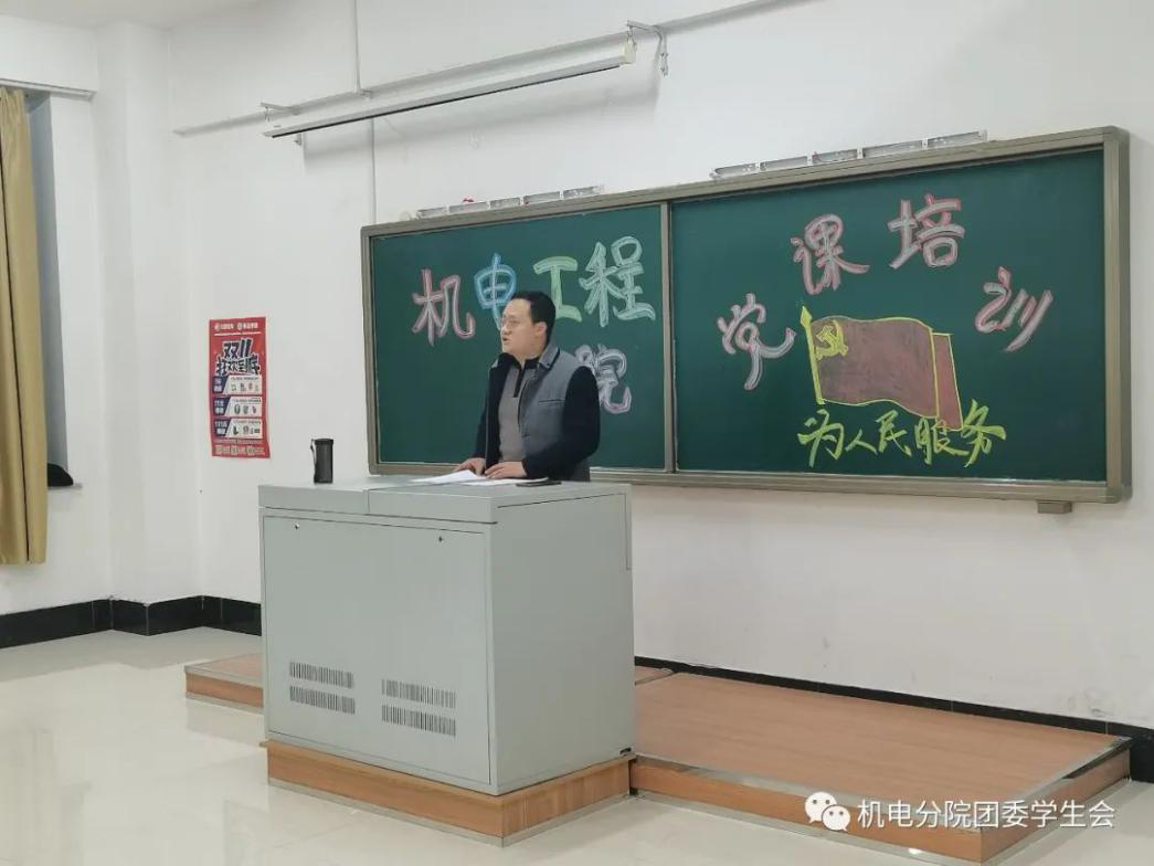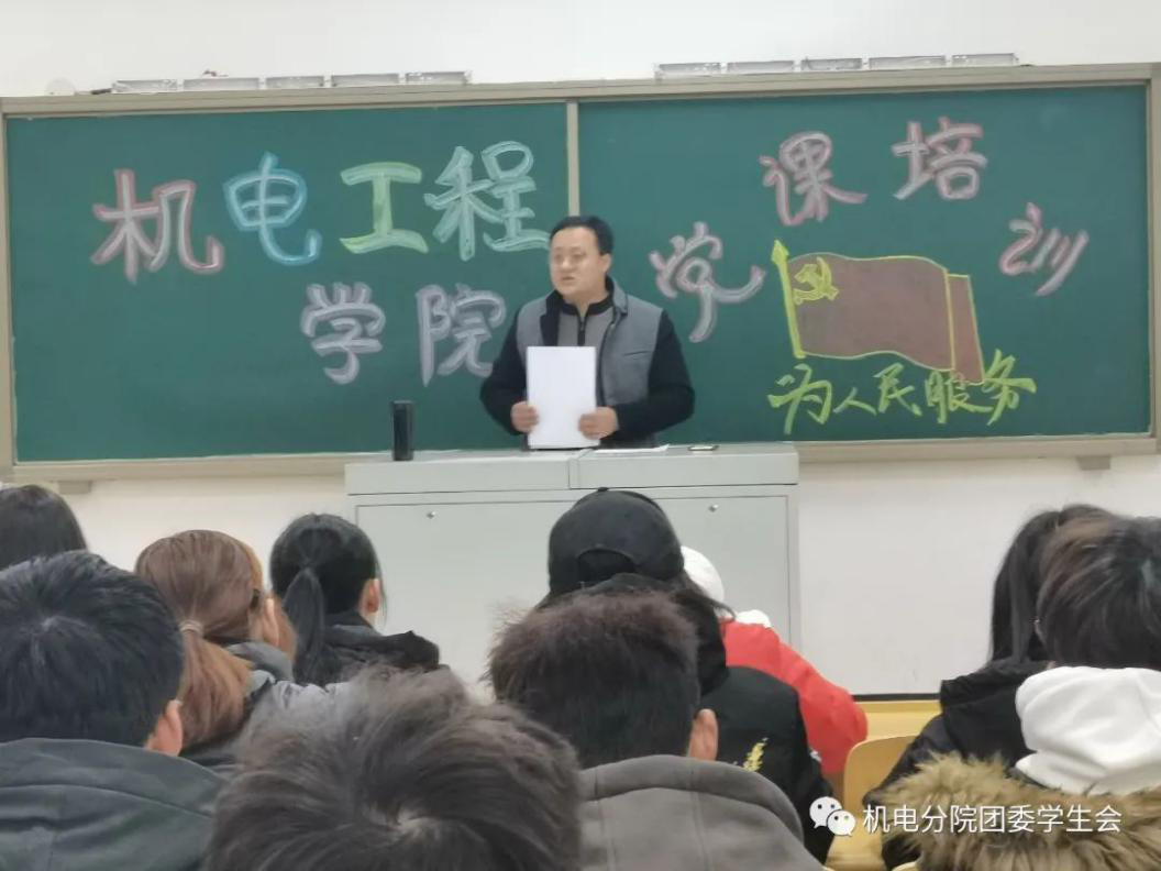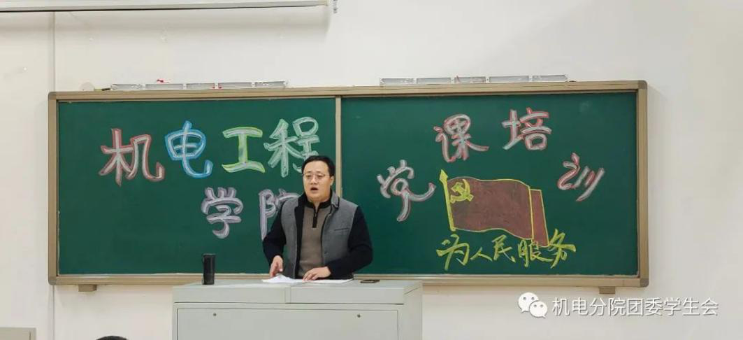 為提高我院入黨積極分子的黨性修養(yǎng),積極開展我院黨政工作,落實(shí)黨內(nèi)政策,我院于11月20日下午4點(diǎn)30分在東教205展開了入黨積極分子的黨課培訓(xùn),來自機(jī)電工程學(xué)院的39名入黨積極分子參加了本次的黨課培訓(xùn),本次黨課培訓(xùn)由我院團(tuán)委書記趙寶剛老師主講。