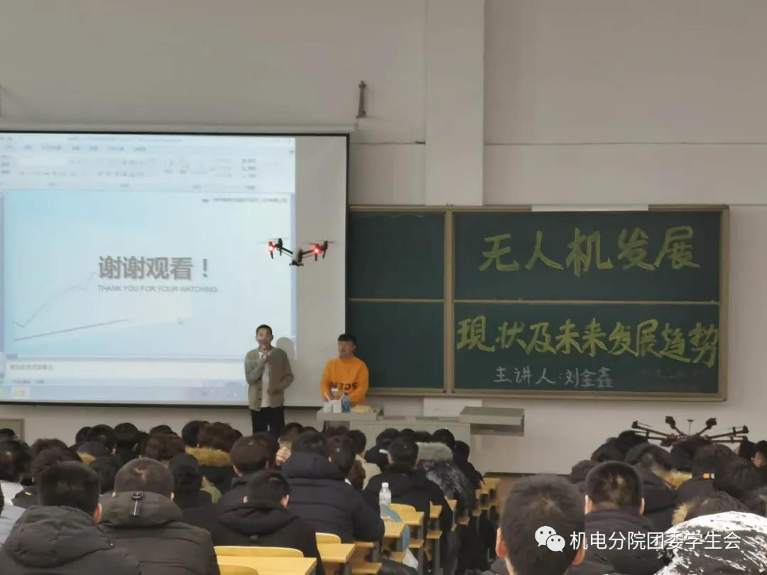 “科學(xué)技術(shù)是第一生產(chǎn)力。”為培養(yǎng)我院學(xué)生的創(chuàng)新精神、鍛煉學(xué)生的實踐動手能力,培養(yǎng)學(xué)生克服困難的能力以及培養(yǎng)學(xué)生的競爭意識和競技意識。機(jī)電工程學(xué)院與吉林省彬生藍(lán)航天際無人機(jī)科技有限公司于主教樓西階401教室聯(lián)合舉辦“無人機(jī)發(fā)展現(xiàn)狀及未來發(fā)展趨勢”宣講會。此次宣講會由黨總支副書記李秀峰老師組織、彬生藍(lán)航天際無人機(jī)公司的劉金鑫老師主持。