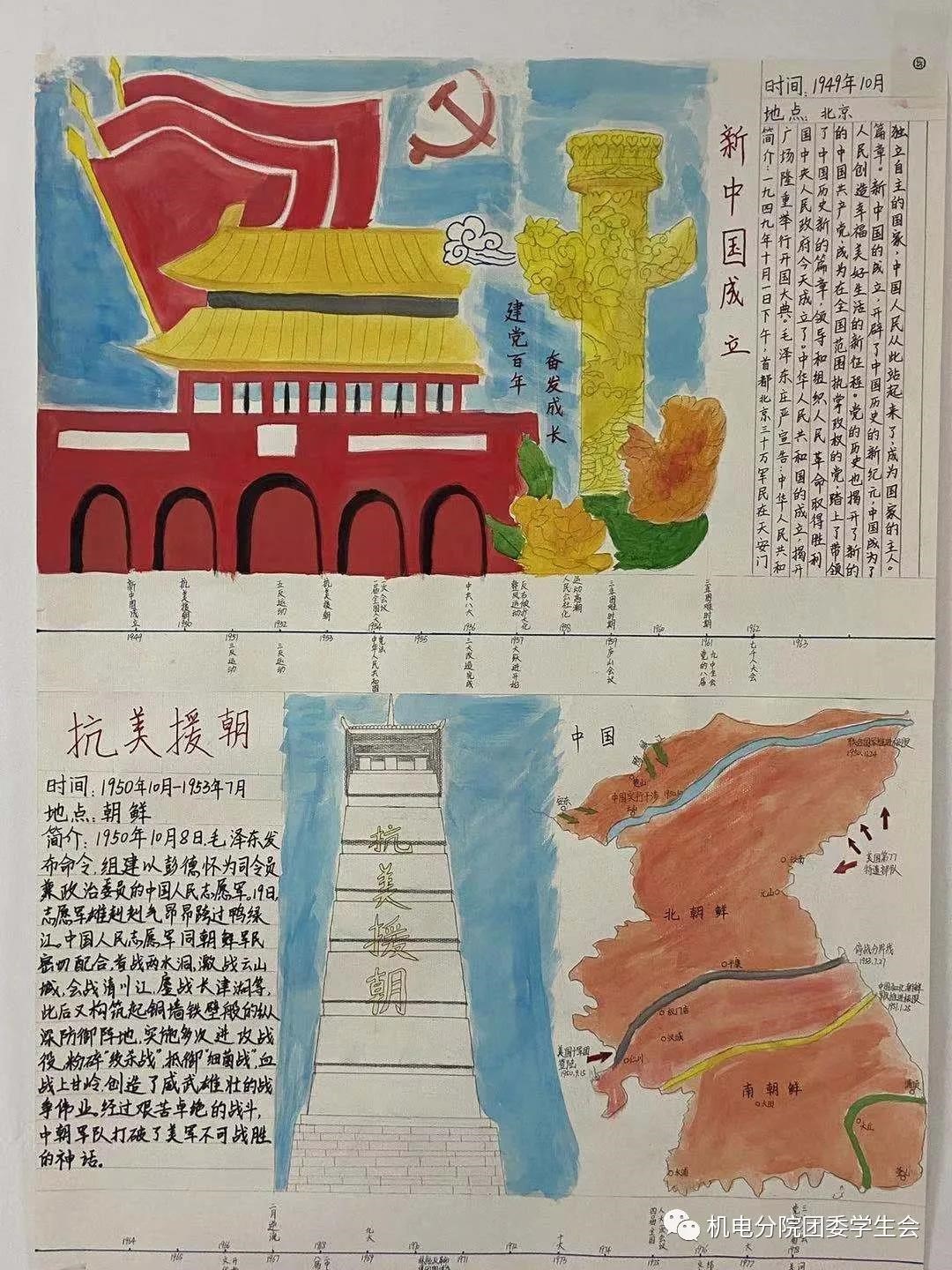 七一前夕, 為慶祝中國(guó)共產(chǎn)黨成立100周年,進(jìn)一步增強(qiáng)黨員和青年團(tuán)員的黨史學(xué)習(xí)教育,增強(qiáng)青年愛黨、愛國(guó)意識(shí),促進(jìn)黨員學(xué)史明理、學(xué)史增信、學(xué)史崇德、學(xué)史力行,機(jī)電工程學(xué)院學(xué)生黨支部開展了慶祝中國(guó)共產(chǎn)黨成立100周年主題板報(bào)展覽活動(dòng)。