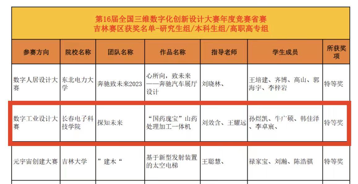 機(jī)電工程學(xué)院師生攜手共同構(gòu)思,充分發(fā)揮自己的創(chuàng)意并結(jié)合 專業(yè)知識(shí),對(duì)設(shè)計(jì)的產(chǎn)品進(jìn)行建模、仿真和分析,憑借著扎實(shí)的專 業(yè)素養(yǎng),創(chuàng)下可喜可賀的成績。由劉效含、王耀遠(yuǎn)老師指導(dǎo)的作品 “‘國藥瑰寶’山藥處理加工一體機(jī)”取得了本屆大賽“數(shù)字工業(yè)” 賽道的特等獎(jiǎng),并獲得國賽資格,這也是我校在該賽項(xiàng)上獲得的最高獎(jiǎng)項(xiàng);作品“太空采礦車”和“田野之光—神農(nóng)號(hào)”分別獲得二等獎(jiǎng)。