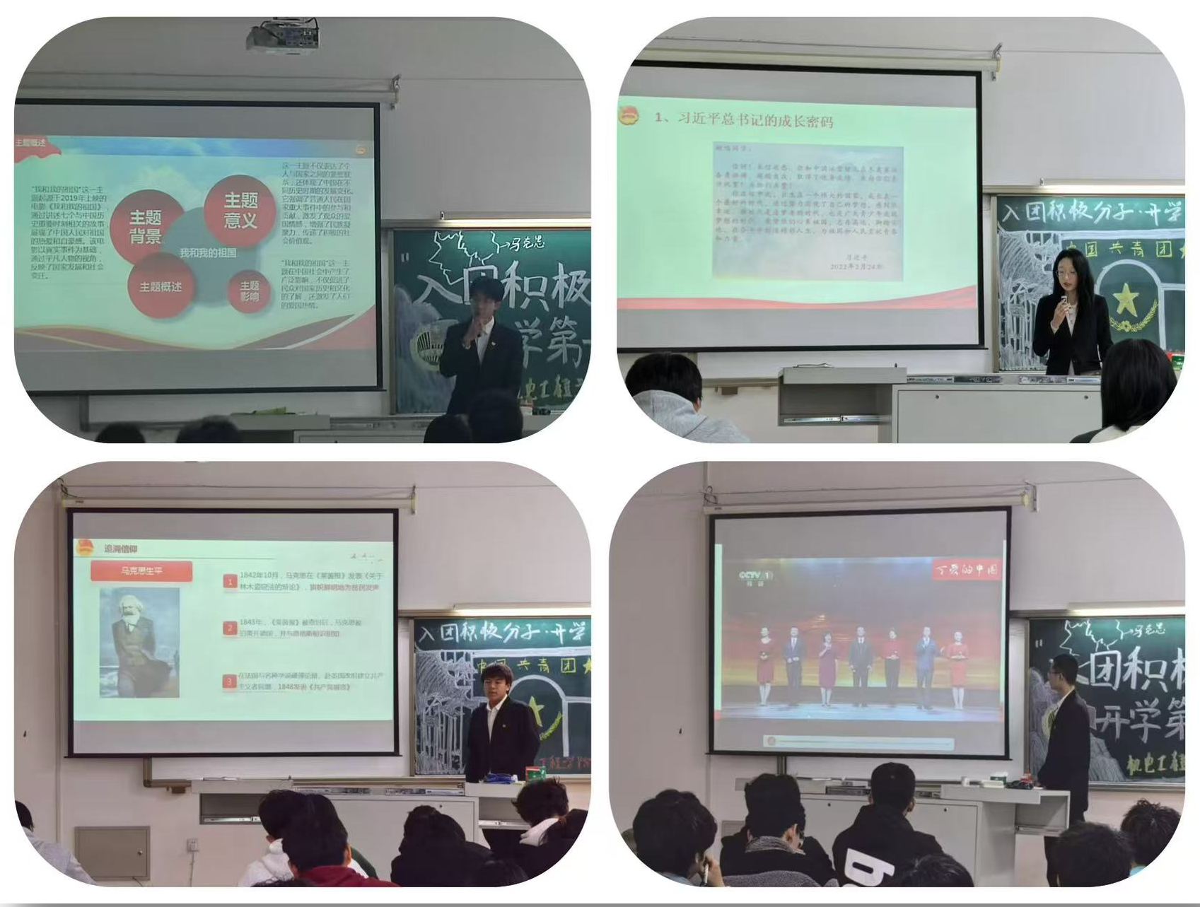 隨后,組織部四名學(xué)生干部桑俊凱、蘭可新、張皓巖和楊曉江分別以《我和我的祖國》、《新時(shí)代中國青年的成長密碼》、《信仰與對(duì)話》、《家書中的初心與使命》為題,講解了身為共青團(tuán)員的大學(xué)生應(yīng)該如何在校園文化建設(shè)中積極發(fā)揮才能,為校園文化建設(shè)注入活力,從多方面闡釋了共青團(tuán)員面臨的機(jī)遇與挑戰(zhàn),呼吁入團(tuán)積極分子要抓住機(jī)遇、迎接挑戰(zhàn)、實(shí)現(xiàn)夢(mèng)想,增強(qiáng)紀(jì)律意識(shí),培養(yǎng)綜合素質(zhì),積極參與社會(huì)實(shí)踐和志愿服務(wù),為社會(huì)的進(jìn)步貢獻(xiàn)屬于自己的一份力量。