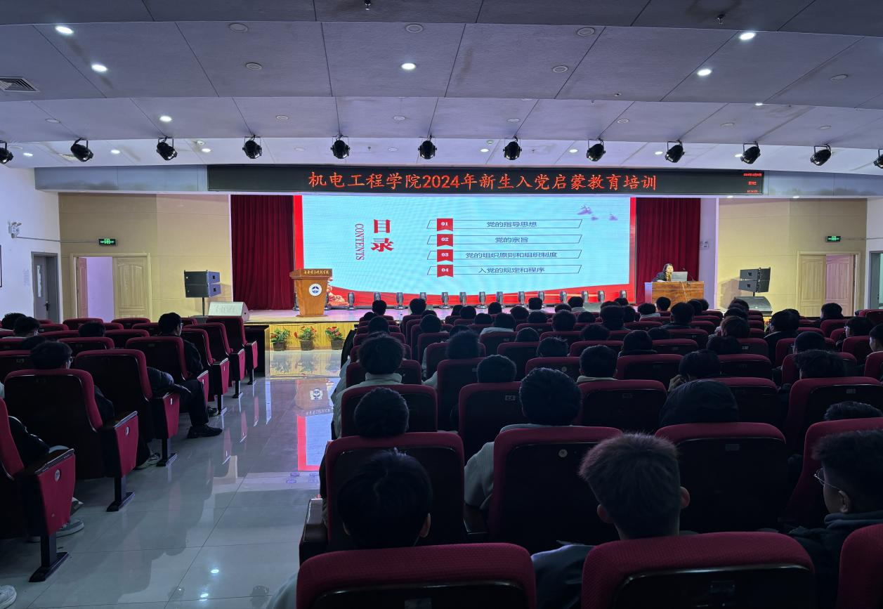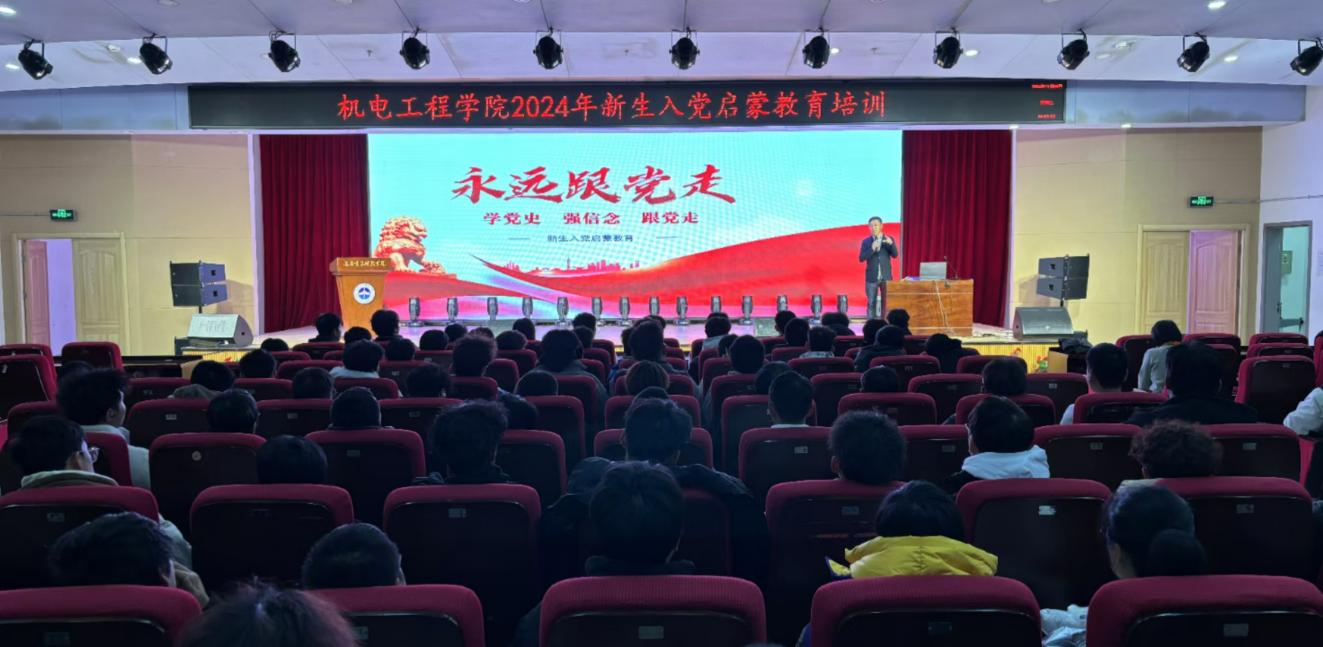 新生入黨啟蒙教育是培養(yǎng)大學(xué)生政治熱情、夯實理想信念的基石,是引領(lǐng)青年學(xué)生深刻理解黨性、純化入黨初衷的關(guān)鍵步驟,是新生樹立堅定政治信仰的“第一課”。為了加強(qiáng)學(xué)院新生的入黨啟蒙教育,引導(dǎo)學(xué)生知史愛黨,知史愛國,學(xué)習(xí)黨的先進(jìn)思想,把握黨的前進(jìn)方向,樹立遠(yuǎn)大理想,11月6日下午,機(jī)電工程學(xué)院于圖書館報告廳開展新生入黨啟蒙教育培訓(xùn),機(jī)電工程學(xué)院黨總支書記李照明、學(xué)生黨支部書記張瀚文、教師黨支部書記郭士茹及2024級全體學(xué)生出席培訓(xùn)會。