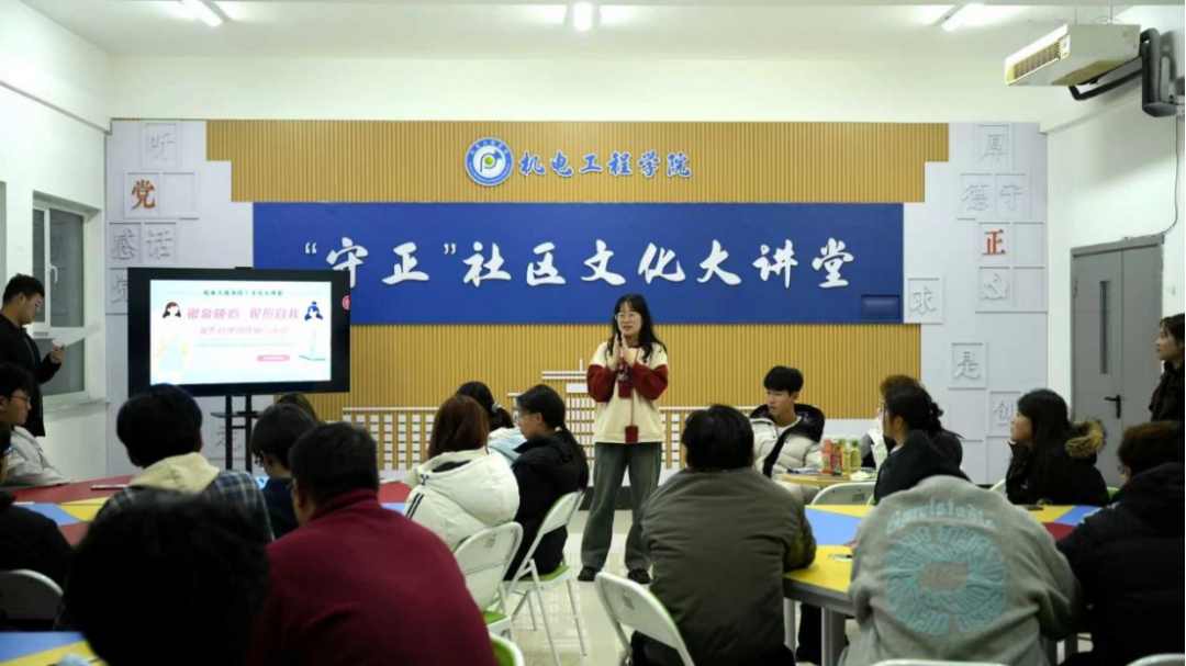 為幫助學(xué)子疏解心理壓力、明晰成長(zhǎng)方向,11月5日,機(jī)電工程學(xué)院一站式守正社區(qū)文化大講堂舉辦“銀幕映心,觀照自我”心理團(tuán)體輔導(dǎo)活動(dòng)。心理健康中心劉昱瑩老師受邀主講,輔導(dǎo)員孫佳鑫與學(xué)院大一大二心理委員、心理成長(zhǎng)愛(ài)好者齊聚現(xiàn)場(chǎng),在溫暖互動(dòng)中開(kāi)啟“心靈對(duì)話”,活動(dòng)由新生張殿博主持。