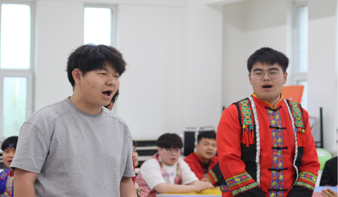 ▲王志浩、閆煒琪、姜霖領(lǐng)唱《愛我中華》