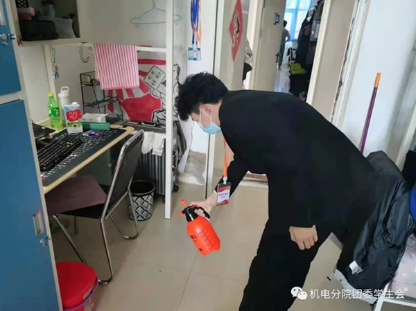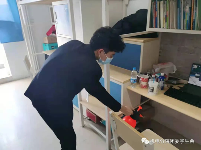 “響必應(yīng)之與同聲,道固從至于同類。”開學(xué)返校之際,同學(xué)間互幫互助的行為吸引著我們的關(guān)注。許多同學(xué)自愿幫助返校學(xué)生搬運行李,充分展現(xiàn)出同學(xué)間有愛的氛圍,他們的身影讓嚴(yán)寒的冬日,處處充滿溫情。此外,機電工程學(xué)院積極組織學(xué)生對寢室進行全面消毒檢查,秉持著認真負責(zé)的態(tài)度,對各寢室縫隙及角落進行重點檢查,并對寢室內(nèi)違規(guī)電器進行搜查,確保學(xué)生寢室安全,為防疫提供基礎(chǔ)保障。
