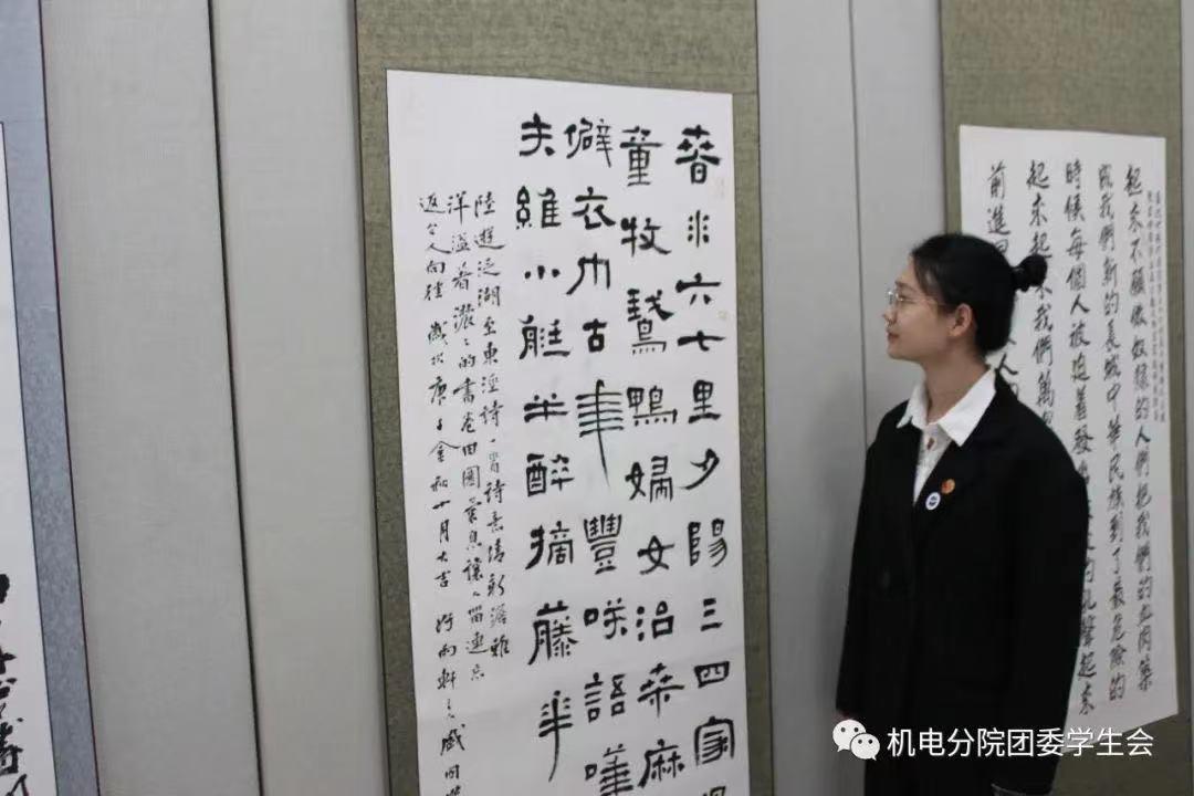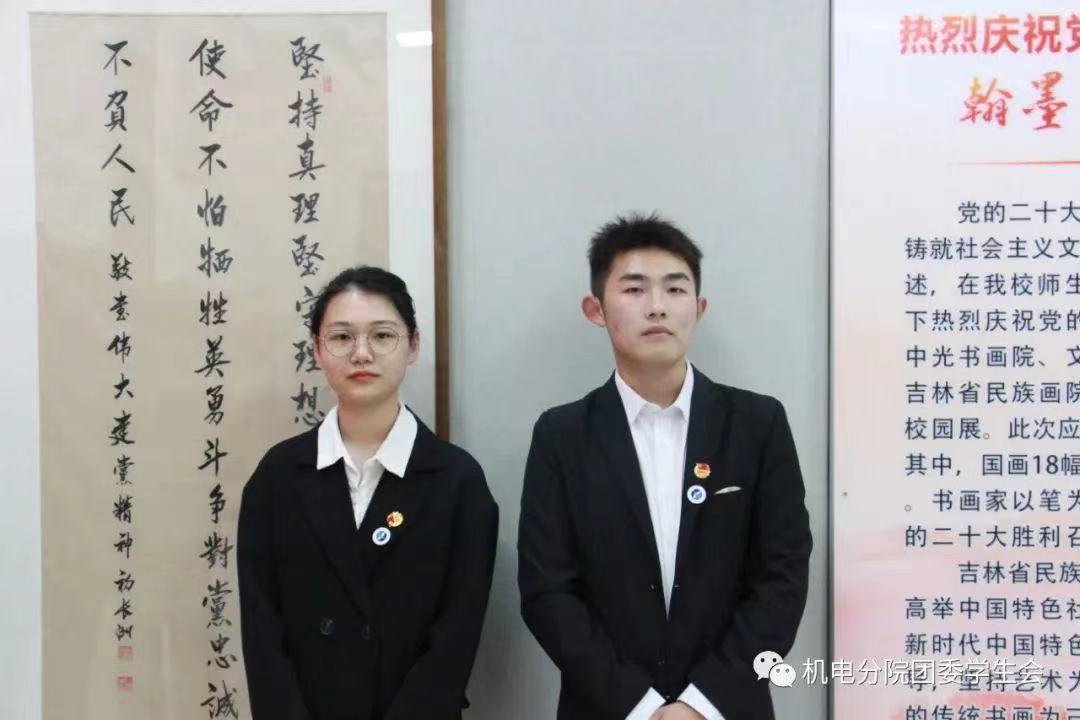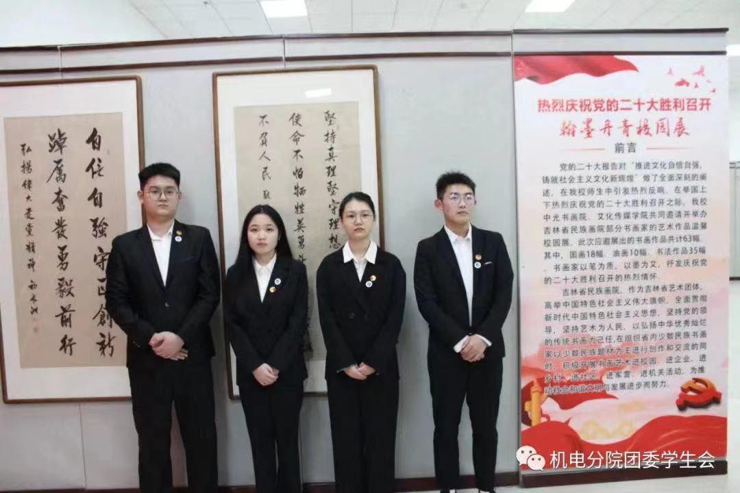 為了迎接黨的二十大勝利召開,積極響應(yīng)黨和國(guó)家號(hào)召,弘揚(yáng)民族文化之精髓,深入了解中華文化的深厚底蘊(yùn),提高同學(xué)們的藝術(shù)修養(yǎng)、審美情趣,機(jī)電工程學(xué)院開展以“二十大”為主題的字畫像合影活動(dòng)。