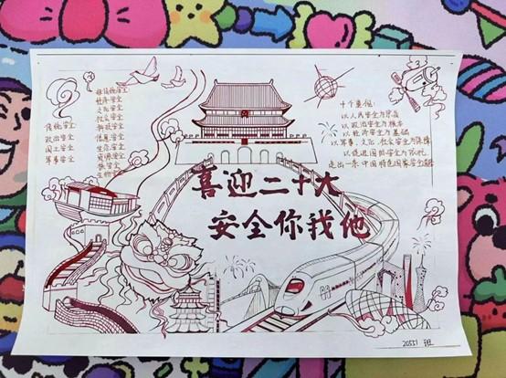 活動一經(jīng)發(fā)布,就受到了同學(xué)們的積極關(guān)注,大家紛紛通過線上觀看教育視頻、查找資料等方式進一步學(xué)習(xí)黨的二十大和國家安全教育知識,并以繪制宣傳海報的形式,將自己所學(xué)內(nèi)容和對黨的二十大和國家安全教育的理解表現(xiàn)出來,構(gòu)圖新穎、色彩豐富。