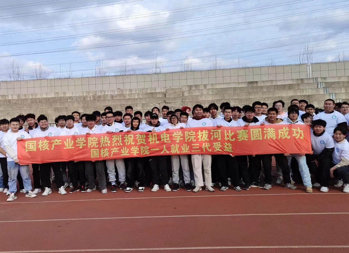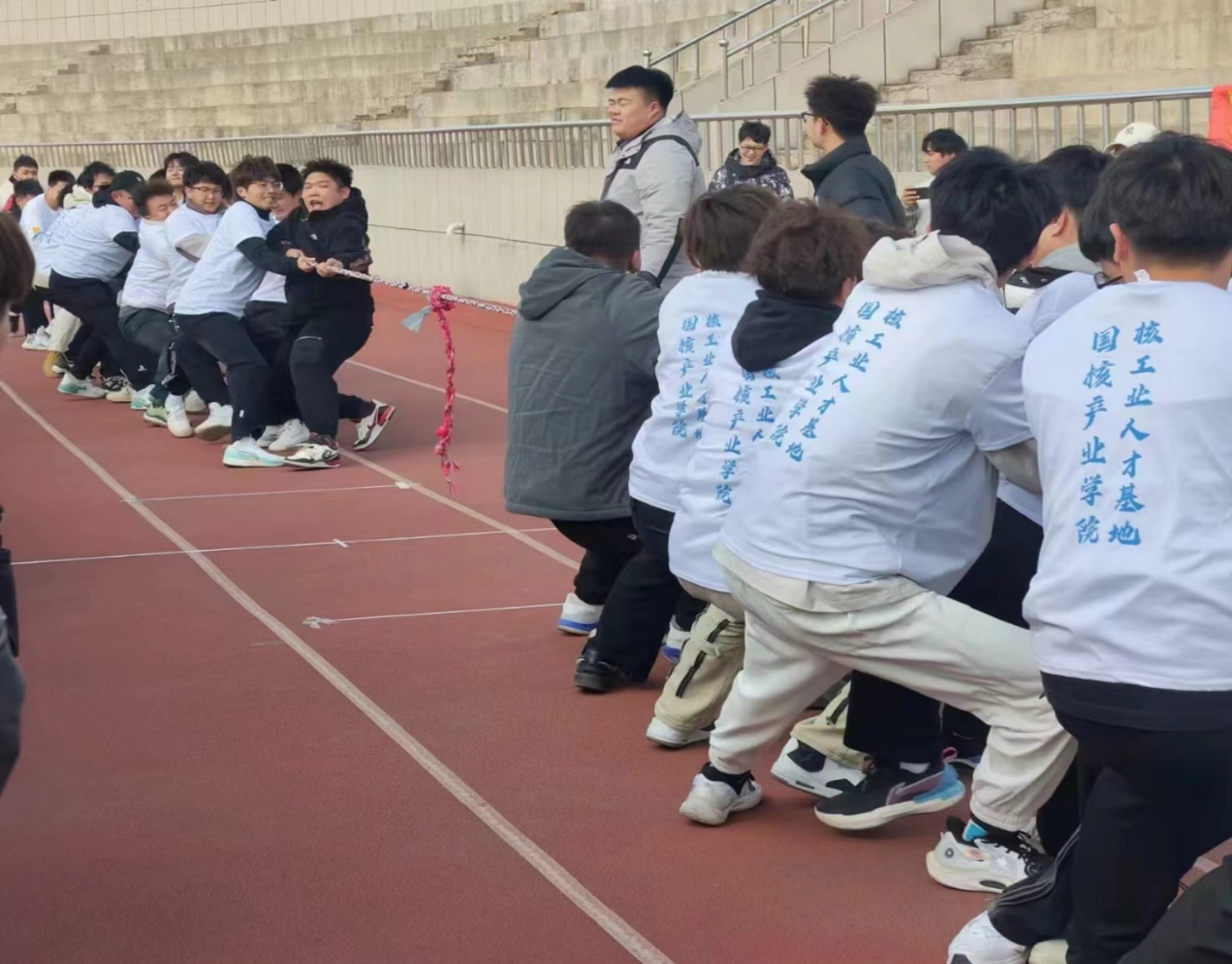 燦爛的笑臉在春風(fēng)中綻放,如潮的吶喊彰顯力量,現(xiàn)場氣氛熱烈,觀賽群眾的吶喊聲、鼓掌聲、歡笑聲此起彼伏,參賽隊(duì)伍彰顯堅(jiān)強(qiáng)的意志與拼搏。拉鋸對抗的持久與穩(wěn)定,勝利前夕的瞬間爆發(fā)力,蓄力反轉(zhuǎn)的忍耐和毅力體現(xiàn)在每一位機(jī)電學(xué)子的臉上,比賽熱火朝天的進(jìn)行,團(tuán)隊(duì)奮斗與對拔河精神的感悟深深印在了同學(xué)們心中。山東國核華星工業(yè)科技有限公司與長春電子科技學(xué)院校企聯(lián)合共建的國核產(chǎn)業(yè)學(xué)院對本次比賽大力支持。