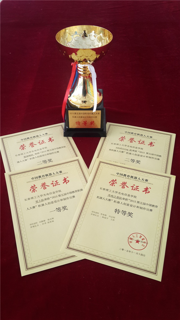 在第五屆中國教育機(jī)器人大賽中喜獲國家級特等獎