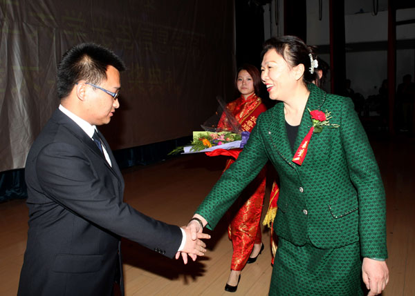 學(xué)院黨委副書記陳藝向大會(huì)致辭時(shí),代表學(xué)院向本次大會(huì)的成功召開表示熱烈的祝賀。她表示:此次大會(huì)是我院進(jìn)行社會(huì)主義核心價(jià)值體系教育的有效載體,是我院精神文明建設(shè)、學(xué)風(fēng)建設(shè)的一個(gè)新的里程碑。陳副書記為學(xué)院擁有這些優(yōu)秀的學(xué)生而感到由衷的高興和自豪,并提出了希望和要求:希望全院學(xué)生以獲獎(jiǎng)同學(xué)為榜樣,弘揚(yáng)“厚德、誠(chéng)信、自強(qiáng)、卓越”的校訓(xùn)精神,做一名“有理想、有抱負(fù)、有追求”當(dāng)代的大學(xué)生;希望獲獎(jiǎng)同學(xué)珍惜榮譽(yù),再接再厲,不斷取得新的成績(jī);希望全院各部門及教師進(jìn)一步做好大學(xué)生思想引領(lǐng)和成長(zhǎng)服務(wù)的各項(xiàng)工作,激勵(lì)廣大學(xué)生克服困難、奮發(fā)成才。