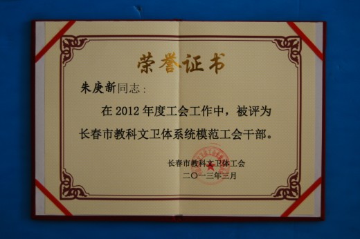 在3月28日結(jié)束的長春市教科文衛(wèi)體工會二屆三次全委(擴大)會議上,市教科文衛(wèi)體工會對長春市2012年度工會工作進行了總結(jié)表彰,我院工會榮獲“2012年度模范工會”榮譽稱號,學(xué)院工會主席朱庚新榮獲“2012年度模范工會干部”榮譽稱號。