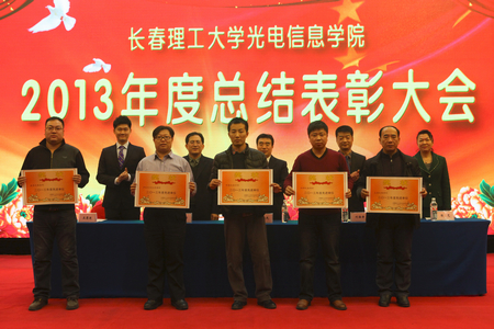 2013年12月27日15時,伴著歡快的樂曲,學院總結表彰大會如期召開,大會在中日友好會館二樓宴會廳舉行,出席大會的有長春理工大學光電信息學院領導班子成員鞠殿民、劉海濤、秦洪君、陳藝、王思迪,以及受表彰的先進教師、員工及全院教職工共四百余人。