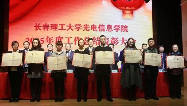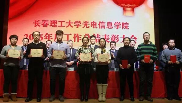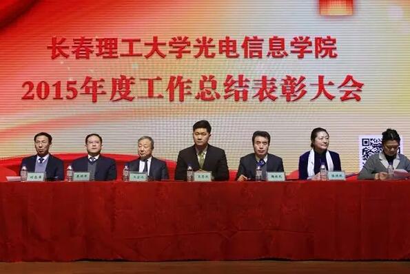 2016年1月22日15時,在歡快的樂曲聲中,學院2015年總結表彰大會于君怡酒店如意廳舉行,出席大會的有長春理工大學光電信息學院董事長王思迪先生,學院顧問王富遠先生,學院董事陳洪秋女士,學院院長兼黨委書記鞠殿民及學院領導班子全體成員,長春國際房地產(chǎn)開發(fā)有限責任公司總經(jīng)理王學峰先生,吉林中光華天股權基金管理有限公司總經(jīng)理王鶴先生、部分集團員工以及學院全體教職員工??偨Y表彰大會由學院副院長劉海濤主持。