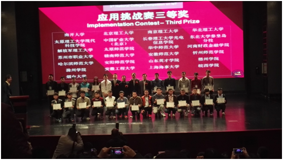 學(xué)院各參賽隊(duì)伍不辭旅途勞累,到達(dá)江蘇省無(wú)錫市爭(zhēng)取一切時(shí)間和條件進(jìn)行測(cè)試和實(shí)踐。最終,在總決賽比賽中,由信息工程分院田麗華老師指導(dǎo),學(xué)生春旗、曹濤、倪師萌組成的團(tuán)隊(duì);由孫海峰老師指導(dǎo),學(xué)生朱暉、趙龍龍、張鐵組成的團(tuán)隊(duì)獲得大賽三等獎(jiǎng)。本次比賽,是我院第一次參加該類型比賽,希望我院師生再接再厲,在今后的比賽中取得更加優(yōu)異的成績(jī)。