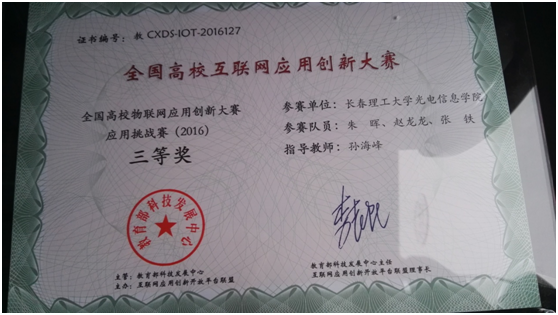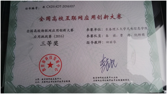 近日,第三屆全國(guó)高校物聯(lián)網(wǎng)應(yīng)用創(chuàng)新大賽在江蘇省無(wú)錫市舉行,大賽是由教育部科技發(fā)展中心主管,互聯(lián)網(wǎng)應(yīng)用創(chuàng)新開(kāi)放平臺(tái)聯(lián)盟主辦,清華大學(xué)軟件學(xué)院、無(wú)錫高新區(qū)管委會(huì)承辦。我院代表隊(duì)喜獲全國(guó)高校物聯(lián)網(wǎng)應(yīng)用創(chuàng)新大賽總決賽三等獎(jiǎng)。
