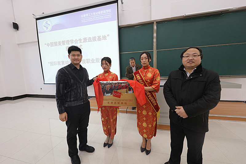 2016年11月9日,應(yīng)學(xué)院董事長王思迪先生的邀請,中國留美管理學(xué)會會長明天然博士一行3人來我院進行訪問合作,同時在我院蘭家校區(qū)西階402舉行了“中國留美管理學(xué)會生源選拔基地”揭牌儀式,為我院師生代表作了“國際教育動態(tài)與自我職業(yè)規(guī)劃”學(xué)術(shù)報告會。