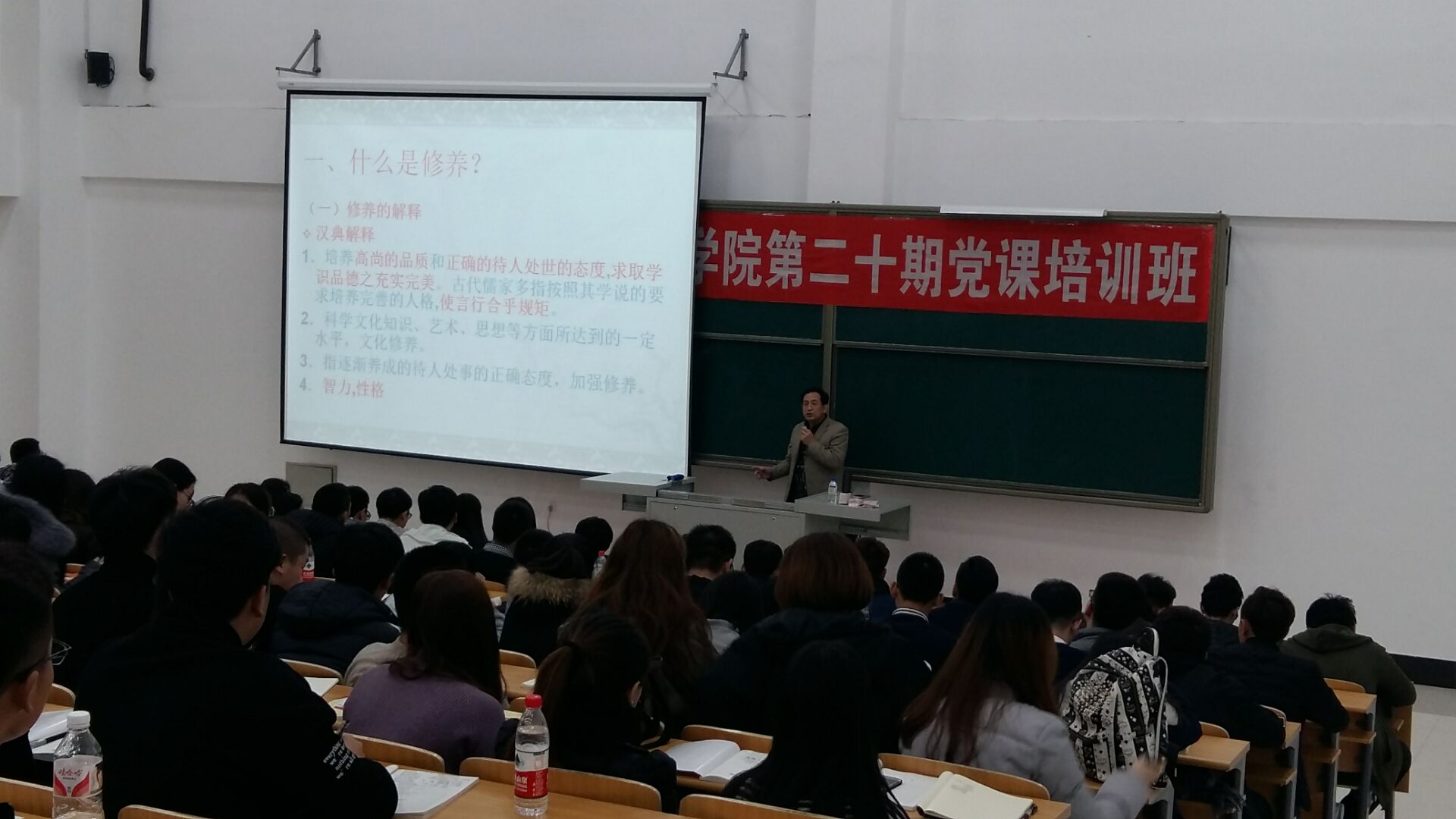11月12日,經(jīng)過學(xué)院黨委組織部認(rèn)真準(zhǔn)備,我院第二十期黨課在新校區(qū)主教東階402教室順利開班!
