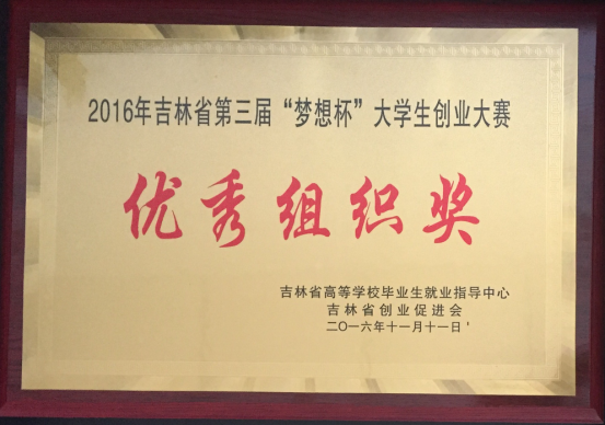 歷時(shí)6個(gè)月的吉林省第三屆“夢(mèng)想杯”大學(xué)生創(chuàng)業(yè)大賽圓滿結(jié)束,大賽頒獎(jiǎng)典禮在11月10日盛大舉行,我院付忠臣副院長(zhǎng)及就業(yè)指導(dǎo)中心徐曉影主任出席典禮,我院喜獲吉林省“夢(mèng)想杯”大學(xué)生創(chuàng)業(yè)大賽優(yōu)秀組織獎(jiǎng)。