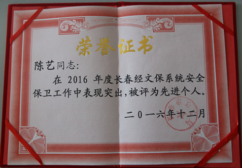 日前,我院榮獲2016年度長春市安全保衛(wèi)工作先進單位,同時,黨委副書記陳藝同志榮獲2016年度安全保衛(wèi)工作先進個人,保衛(wèi)處處長閆貴永同志、治安科溫占賓同志榮獲2016年度安全保衛(wèi)工作優(yōu)秀保衛(wèi)干部。