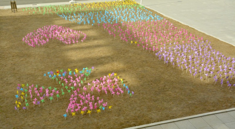 日前,傳媒藝術學院團委組織學生將五顏六色的風車以各種圖案點綴到蘭家校區(qū)主樓樓下,隨風轉動的風車喚起師生們的感動,重拾美好時光。