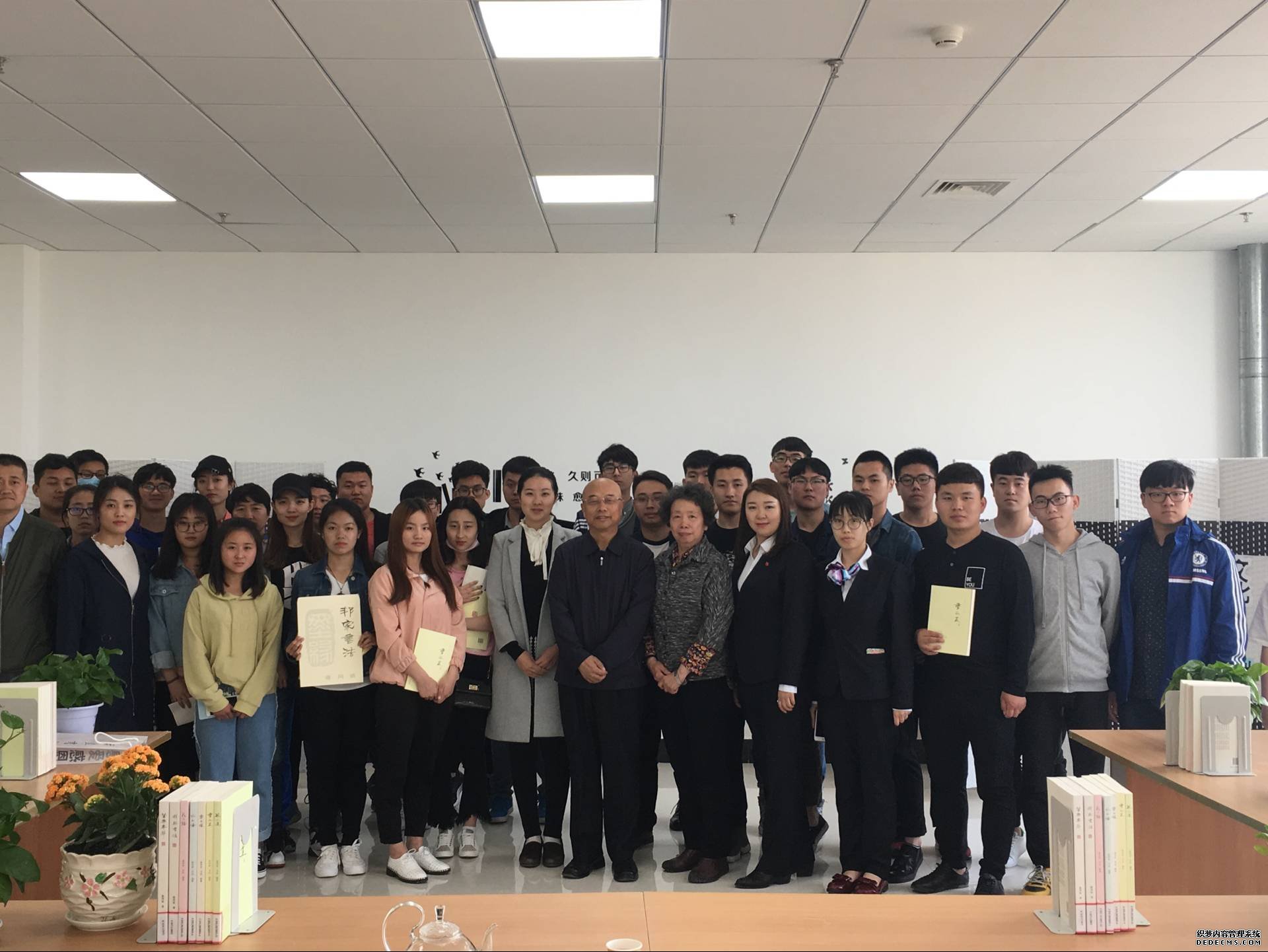 活動現(xiàn)場,學院董事陳希萌與客座教授徐邦家、光電師生合影留含。
