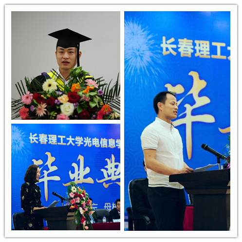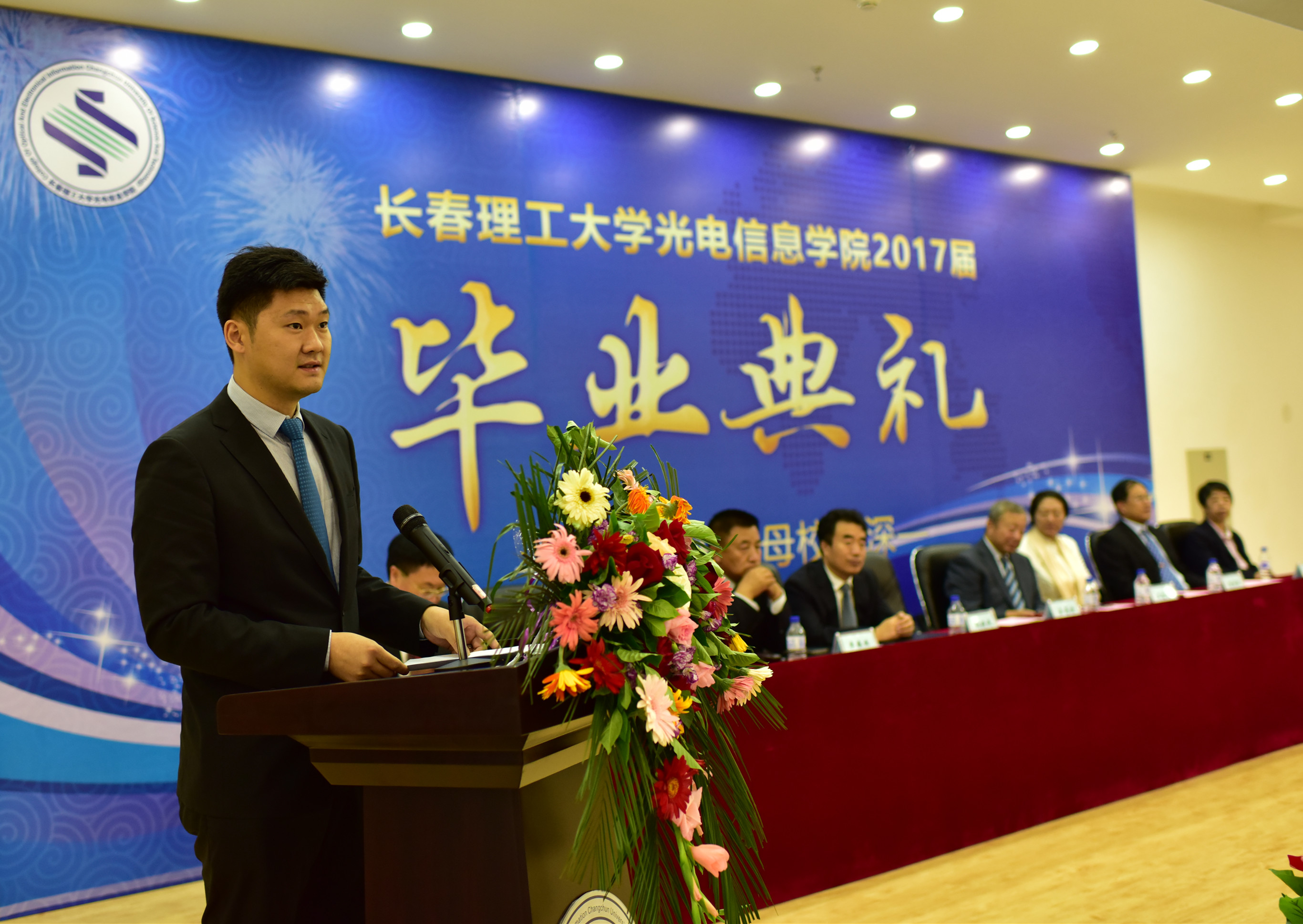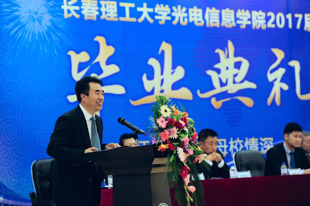 典禮上,學(xué)院院長(zhǎng)鞠殿民發(fā)表了激情洋溢的講話:他代表學(xué)院向圓滿完成學(xué)業(yè)的2481名畢業(yè)生致以最熱烈的祝賀和最美好的祝福。鞠院長(zhǎng)心潮澎湃地說(shuō),四年前,同學(xué)們背著行囊、懷著夢(mèng)想,來(lái)到長(zhǎng)春理工大學(xué)光電信息學(xué)院;四年來(lái),你們奮力拼搏,在光電學(xué)習(xí)本領(lǐng)、增長(zhǎng)才干、砥礪品格、收獲情誼,用求知的精神指引青春,用責(zé)任之心為前行注入力量。希望辭別母校,走向新天地的同學(xué)們能夠志存高遠(yuǎn)、腳踏實(shí)地;靜水流深、有容乃大;勤學(xué)不輟、與時(shí)俱進(jìn);明辨是非、保持理性。相信“長(zhǎng)春理工大學(xué)光電信息學(xué)院”一定會(huì)因?yàn)槟銈円慌?、一代代光電學(xué)子的杰出表現(xiàn)而聲譽(yù)更高、名字更響!