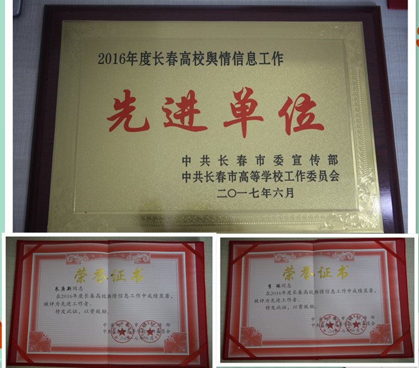 喜報(bào):學(xué)院榮獲2016年度長(zhǎng)春高校輿情信息先進(jìn)單位