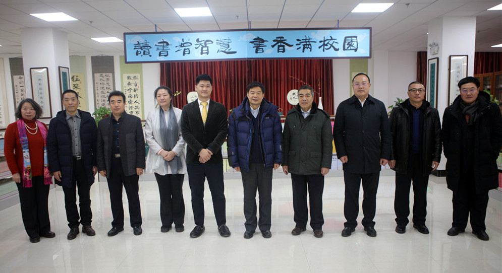 會(huì)后,領(lǐng)導(dǎo)一行參觀了我校圖書館,并在邦家書畫苑合影留念。