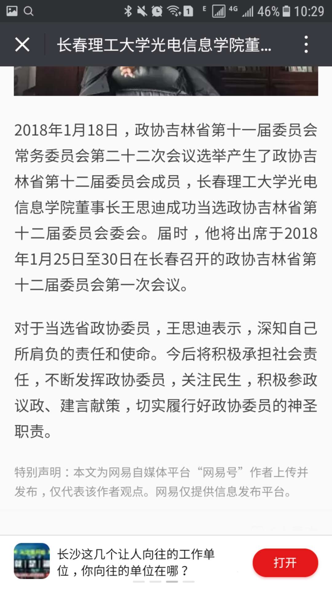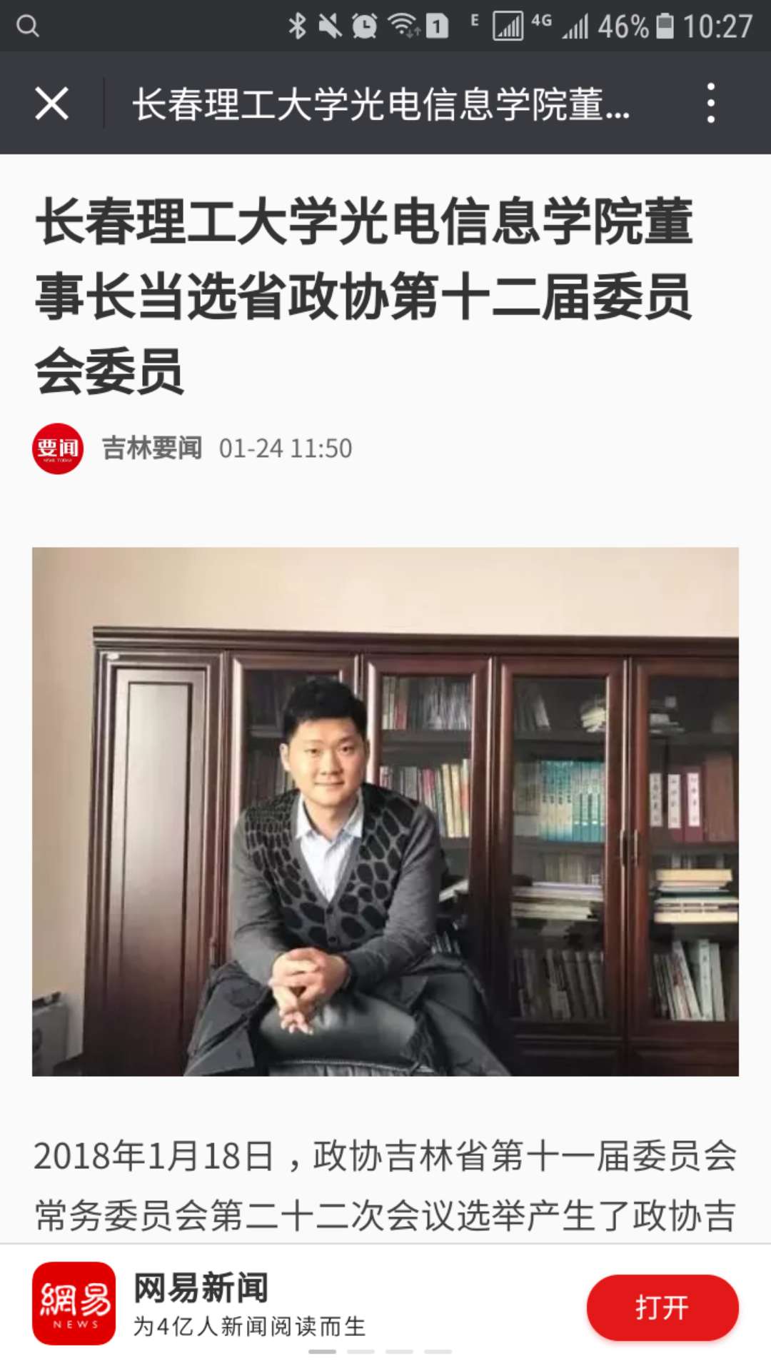 日前,《網(wǎng)易新聞》對王思迪董事長當選省政協(xié)委員進行了宣傳報道。王思迪董事長當選政協(xié)吉林省第十二屆委員會委員后,于2018年1月25日至30日在長春召開的政協(xié)吉林省第十二屆委員會第一次會議。并于2018年1月36日至31日,列席參加了吉林省第十三屆人民代表大會第一次會議。