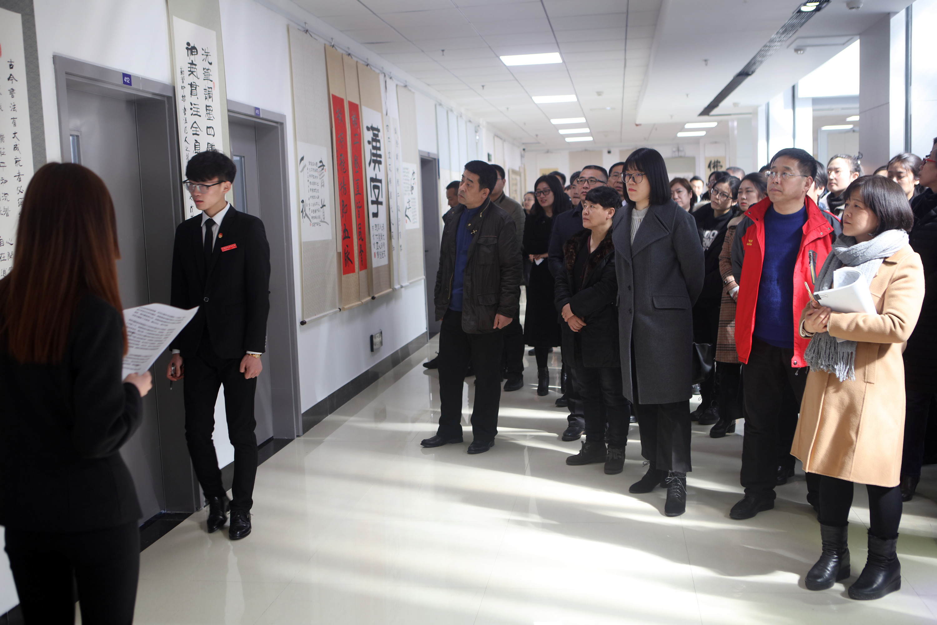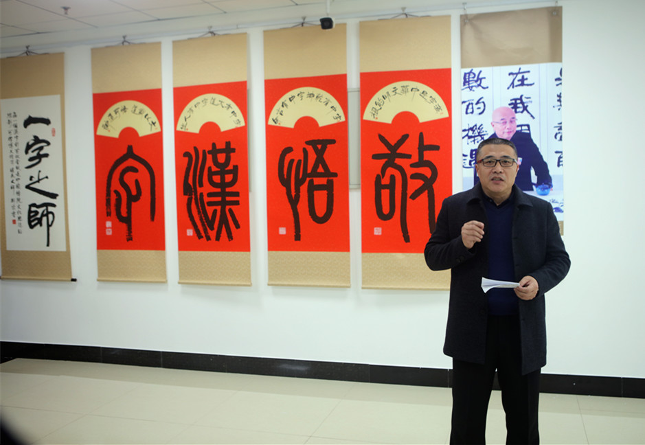 韓書記介紹說,這次書畫展以《敬悟漢字》為主題,徐老師的精美書法藝術(shù)將給我們帶來視覺盛宴和藝術(shù)熏陶,特別是通過徐老師對文字蘊(yùn)含深刻人生哲理的闡釋,將會極大地震撼我們的思想,啟迪我們?nèi)松乃伎?,開創(chuàng)我們教書育人的新境界!