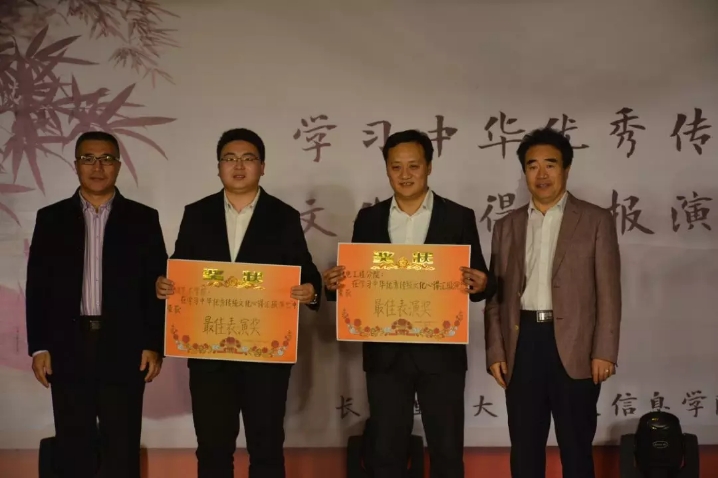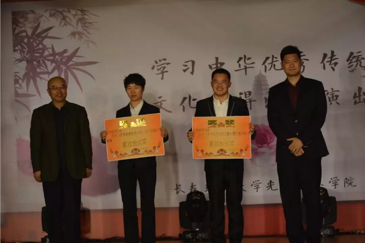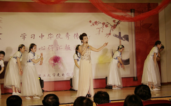 中華民族五千年傳統(tǒng)文化,博大精深;詩書禮樂琴棋書畫,光電學子展風采。4月20日,由長春理工大學光電信息學院黨委主辦的學習中華優(yōu)秀傳統(tǒng)文化心得匯報演出,在圖書館報告廳落下帷幕。學院董事長王思迪、董事陳洪秋女士、客座教授徐邦家及其夫人夏桂芝女士,學院、分院領導班子成員、各黨總支書記、全體輔導員、師生代表一同觀看了文藝匯演。