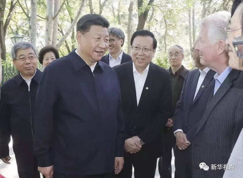 5月2日,中共中央總書記、國家主席、中央軍委主席習近平來到北京大學考察。這是習近平在北京大學臨湖軒北側的小庭院看望部分資深教授和中青年教師代表,并同他們親切交談。