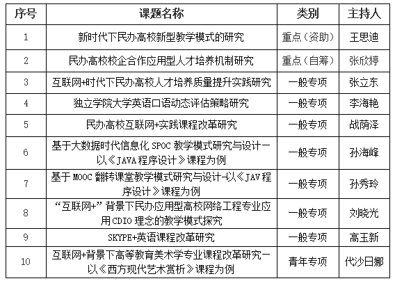 近日,吉林省高等教育學會2018年度高教科研課題評審工作已經(jīng)結束,根據(jù)《吉林省高等教育學會高教科研項目管理辦法》和《關于申報吉林省高等教育學會2018年度高教科研課題的通知》相關規(guī)定,經(jīng)吉林省高教學會專家組評議,由王思迪申請的《新時代下民辦高校新型教學模式的研究》(重點資助)、張欣婷申請的《民辦高校校企合作應用型人才培養(yǎng)機制研究》(重點自籌)等10項課題成功獲批立項,在此恭祝10位老師申請課題成功立項,并希望各位老師在今后的工作中不懈努力、真抓實干繼續(xù)做好課題后續(xù)中檢、結題等工作。