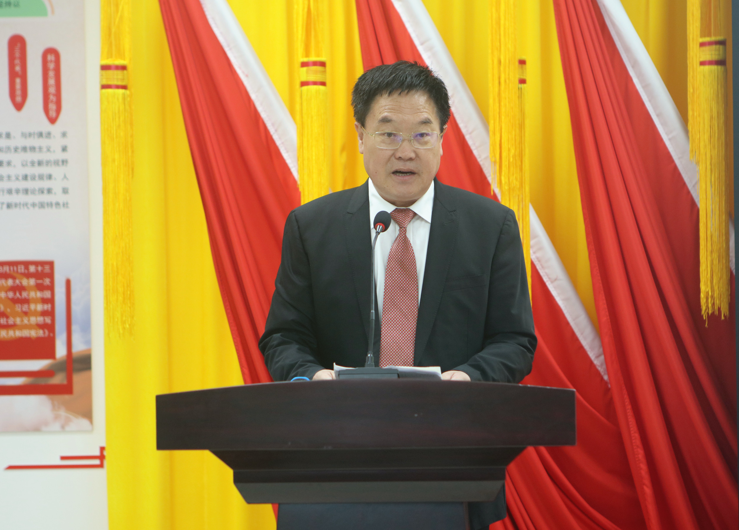董事長王思迪先生在致辭中介紹了馬社學(xué)院成立的背景和歷史,今年適逢馬克思誕辰200周年、《共產(chǎn)黨宣言》發(fā)表170周年。同時,今年是中國改革開放40周年、中國共產(chǎn)黨建黨97周年。近年來,中央一系列重要會議的召開、一系列重要文件的印發(fā)和習(xí)近平總書記系列講話精神為高校思想政治工作指明了方向。2017年9月,教育部印發(fā)《高等學(xué)校馬克思主義學(xué)院建設(shè)標(biāo)準》,要求高校進一步建強建好馬克思主義學(xué)院,不斷提升馬克思主義學(xué)院建設(shè)的科學(xué)化、規(guī)范化、現(xiàn)代化水平,打造馬克思主義理論教學(xué)、研究、宣傳和人才培養(yǎng)的堅強陣地,使之成為辦好高校思想政治理論的堅強戰(zhàn)斗堡壘。學(xué)院基于多方面考慮,2017年年底,決定在思想政治理論教研部和體育教研部基礎(chǔ)上,組建馬社學(xué)院,直屬于黨委領(lǐng)導(dǎo),獨立設(shè)置的從事教學(xué)、科研與社會服務(wù)的二級教學(xué)單位。