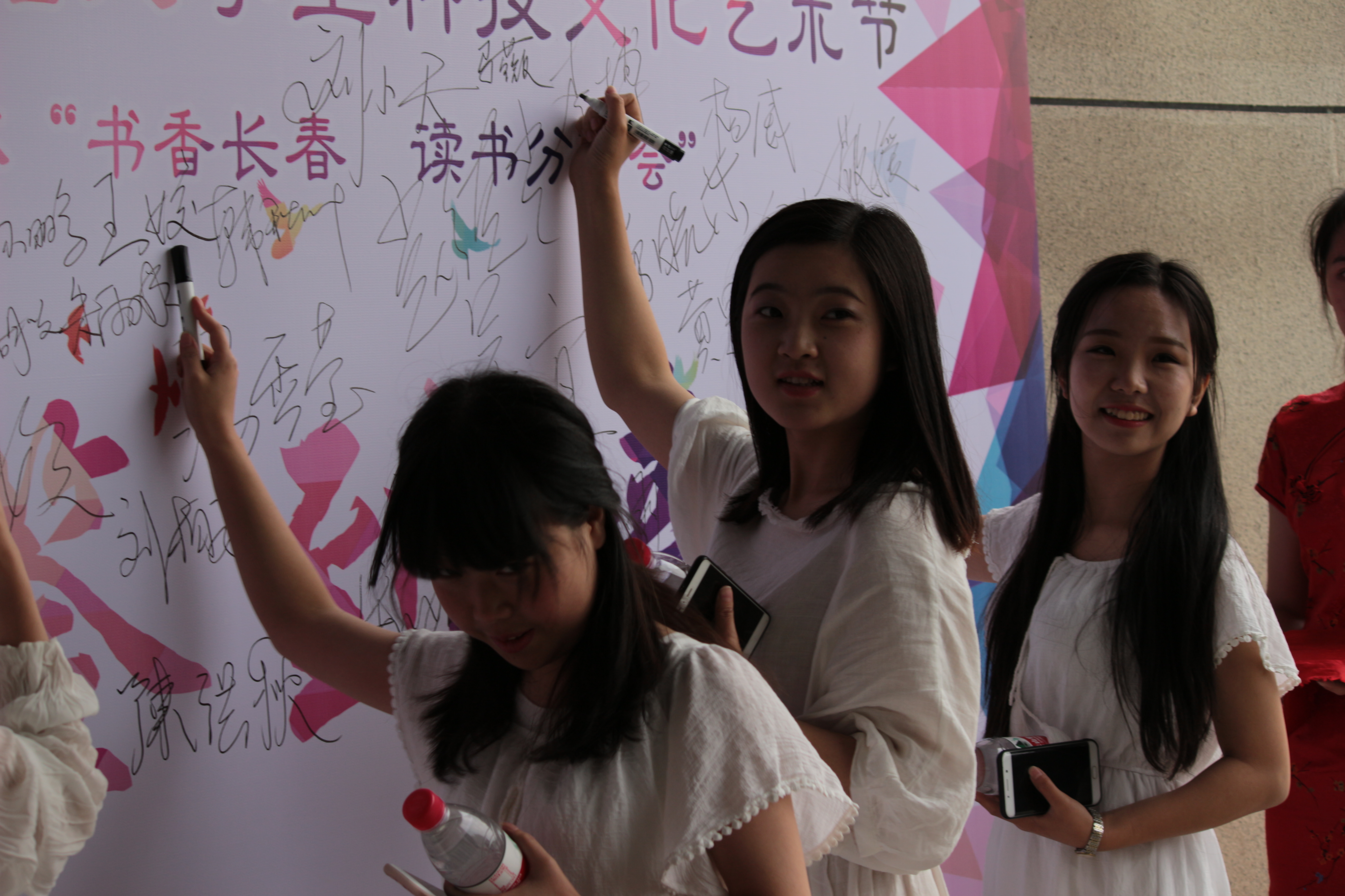 學(xué)習(xí)新思想,走進新時代,堅定改革路,共圓中國夢。各單位領(lǐng)導(dǎo)和來賓、參賽選手紛紛在“書香長春——讀書分享會”主題墻上簽字留念,以示對本次活動的支持。
