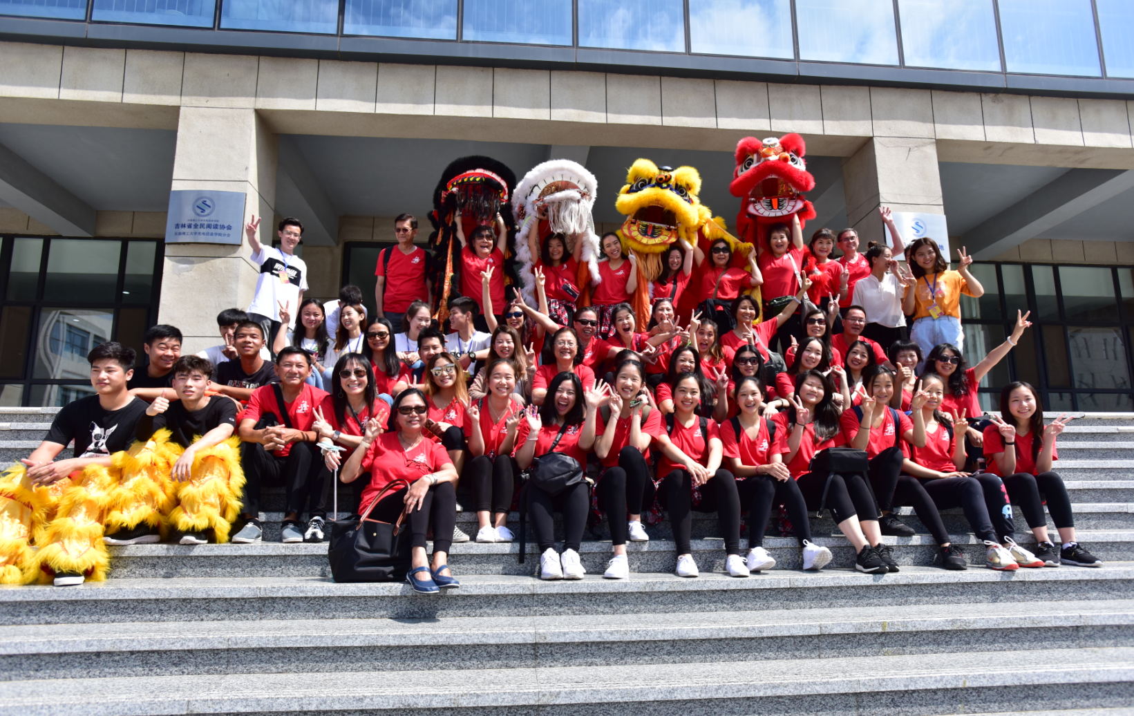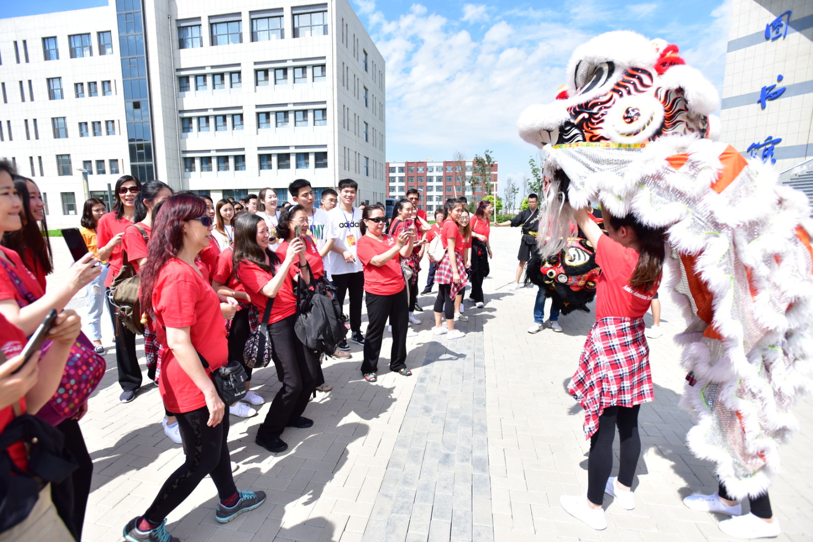 首先,光電信息學(xué)院團(tuán)委學(xué)生以獨(dú)具民族特色的中華醒獅表演歡迎美國西部華裔青少年舞蹈團(tuán)。